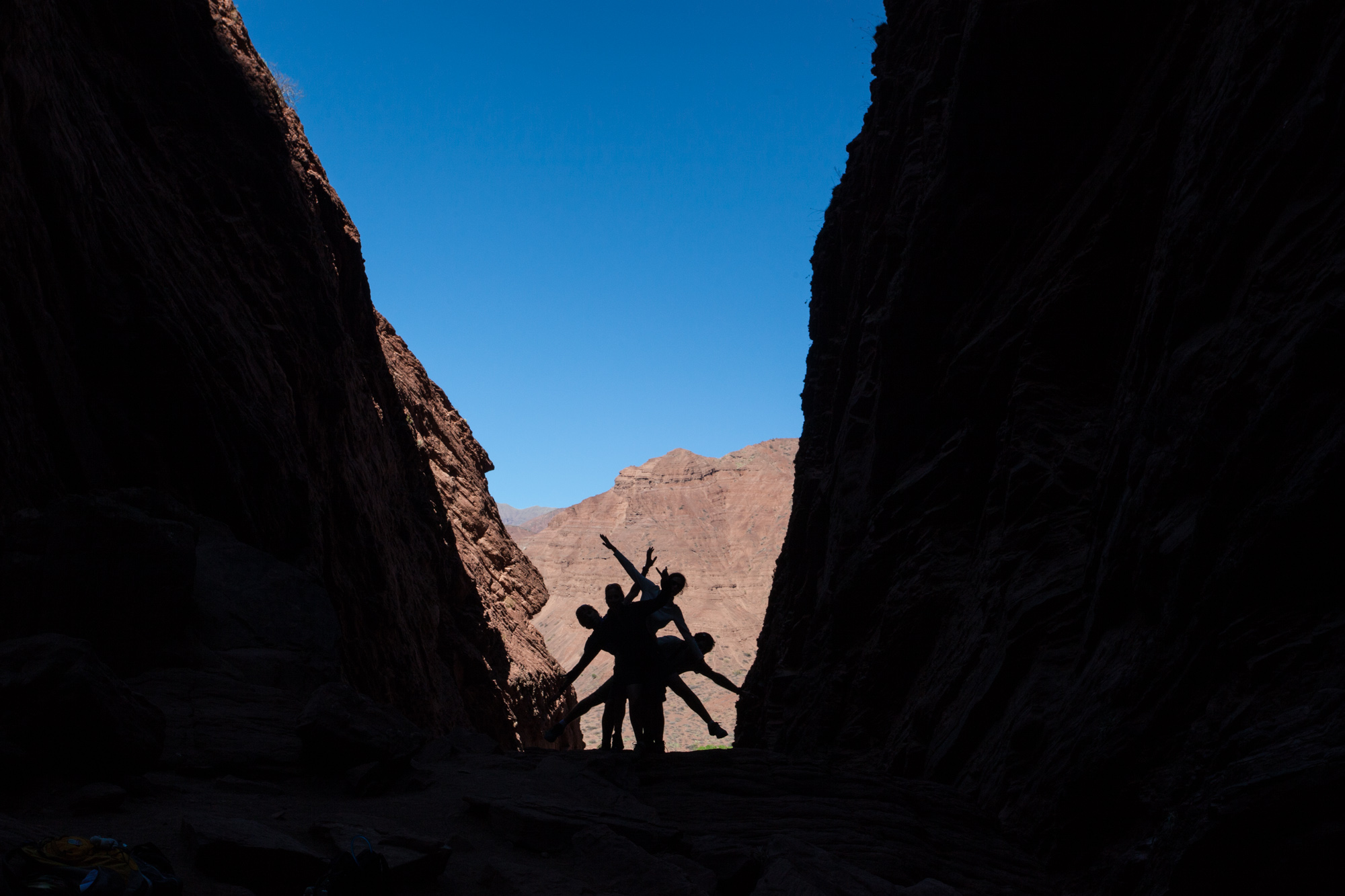 Nous campons dans Tilcara, un village connu pour être un très ancien berceau de civilisation de la vallée. Le lendemain, nous effectuons une randonnée de trois heures au milieu des cactus jusqu’à une chute d‘eau située dans la Garganta del Diablo. Nous nous apercevrons que ce terme de la Gorge du Diable est utilisé à toutes les sauces. Canyon, faille géologique… Même l’impressionnant fer à cheval des chutes d’Iguazu se nomme la Garganta del Diablo. En tous les cas, la chute d’eau que nous voyons aujourd’hui ne mérite pas vraiment son appellation. Cela n'empêche pas Charles et Nicolas de s’attarder pour prendre des photos.