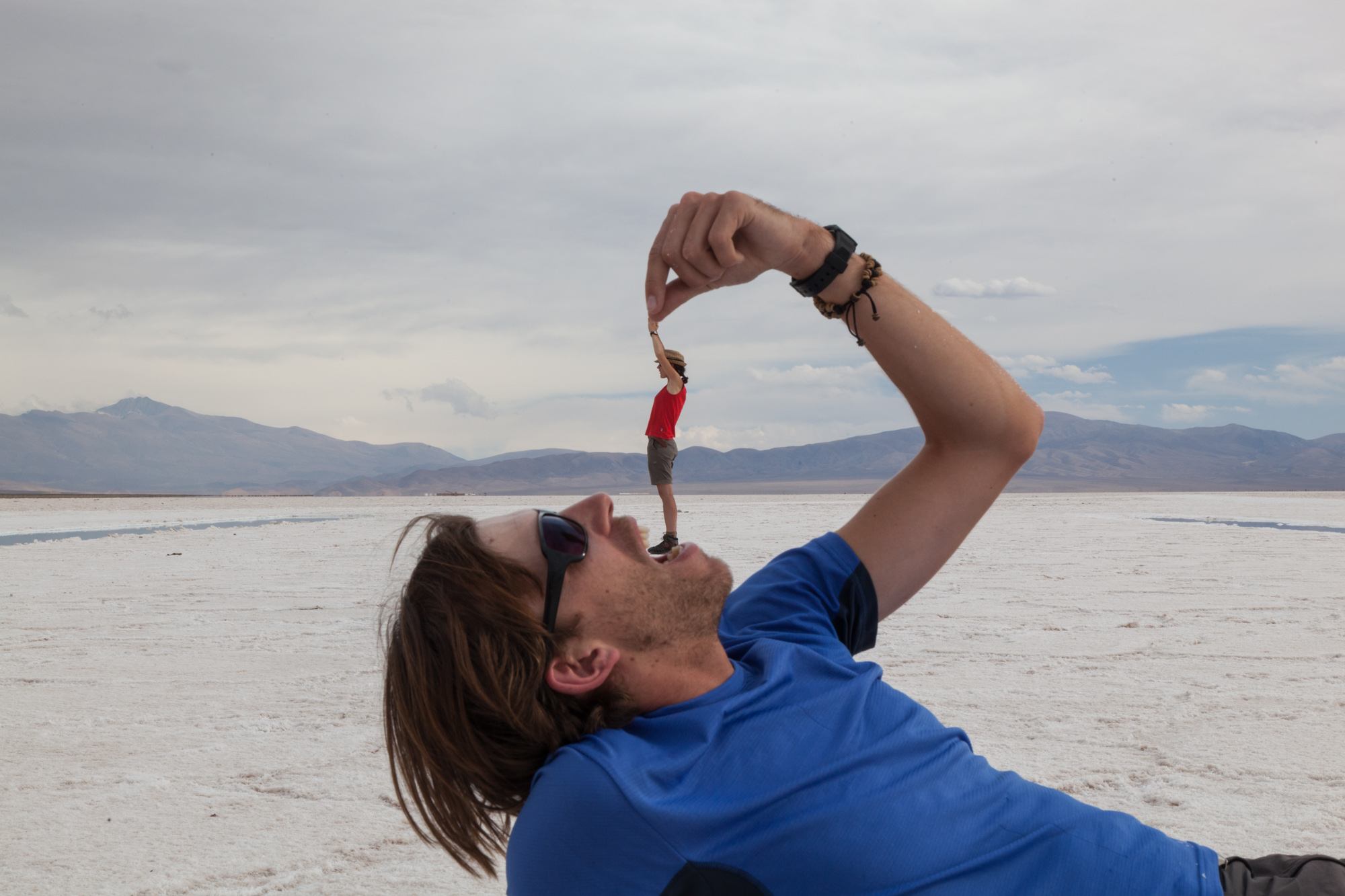 Nous remontons un col impressionnant pour atteindre les Salinas Grandes, un salar exploité avec des moyens industriels (ça change de la Bolivie). Elles seront pour nous l’occasion de faire des photos terrifiantes (jugez par vous-même).