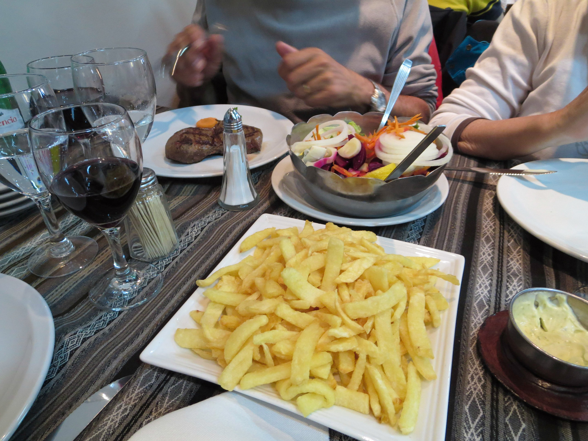 Oui, parce qu’il n’y a rien de mieux pour accompagner la viande. Le vin est produit dans la région de Mendoza, San Juan et celle de Cafayate. Il est bien charpenté, excellent et…il ne faut pas en boire beaucoup pour être pompette. Il est aussi très abordable: on peut trouver de très bonnes bouteilles à partir de 3,5€. Nous avons particulièrement apprécié l’Elementos (Malbec 2012) et le San Felipe.