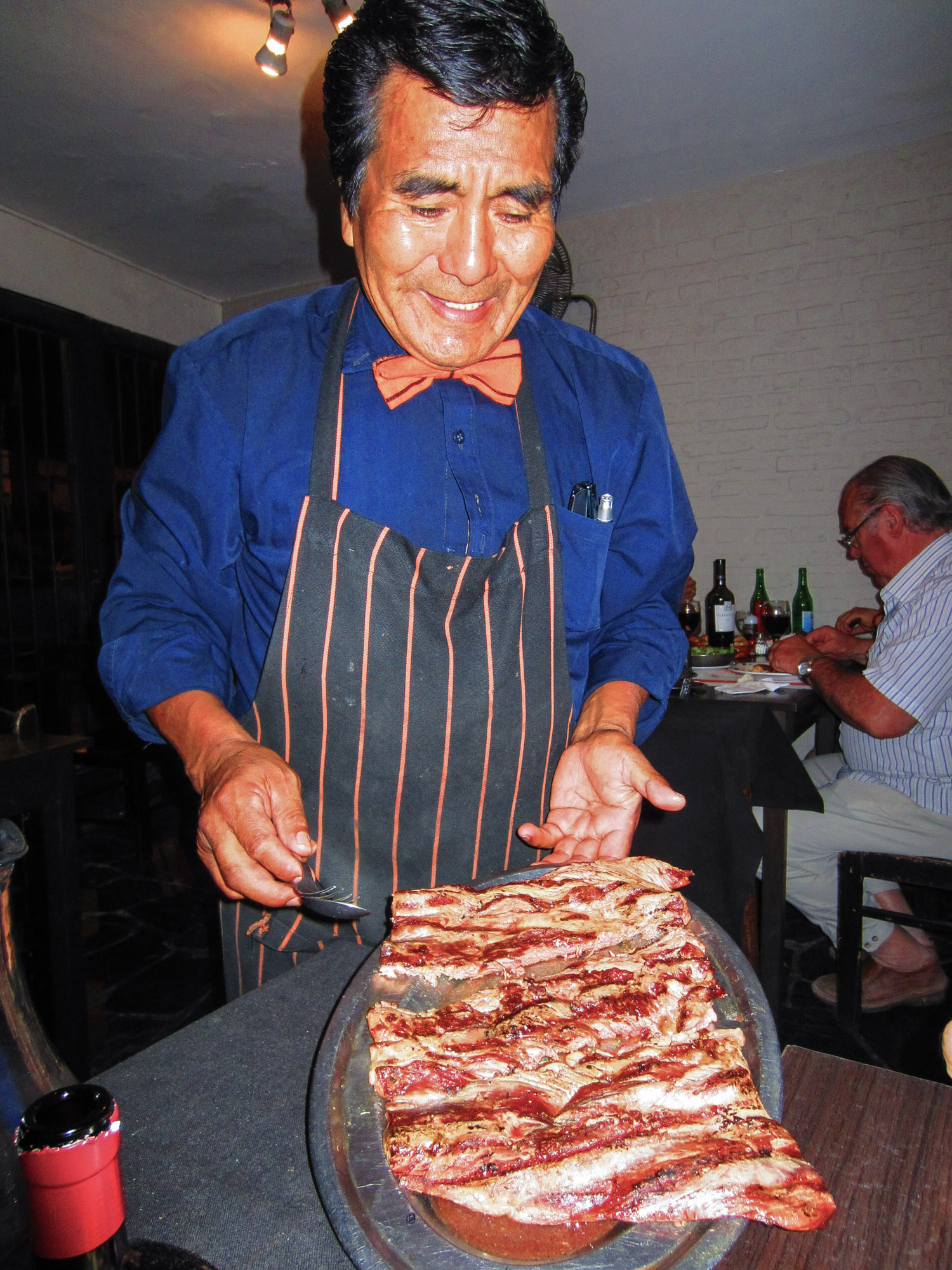 Il y a d’ailleurs des barbecues absolument partout dans le pays, du nord au sud, d’est en ouest, dans tous les jardins, dans tous les campings et même sur les aires d’autoroute. Fête de famille, fête nationale, Noel, Nouvel An… on ne rate pas une occasion d’allumer le feu. Alors, mythe ou réalité: nous, on a goûté…moultes fois même et effectivement, on a rarement eu dans nos assiettes une viande plus goûteuse et plus tendre. Pour preuve, le serveur du restaurant de Salta a découpé notre filet … avec une cuillère à soupe.