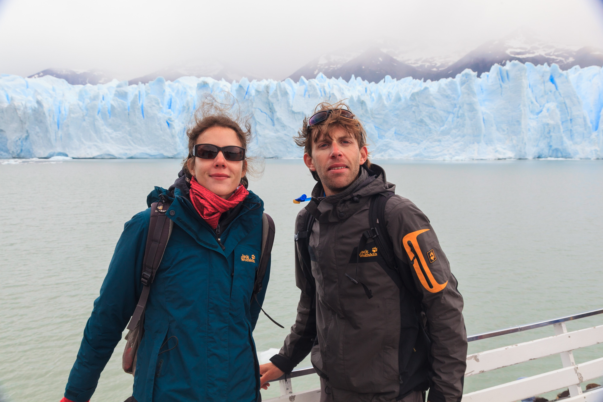Nous nous rendons donc au parc des glaciers pour voir la bête. Des services de croisière permettent d’approcher relativement près le front du Perito Moreno. Le bateau fait un tour d’une bonne heure, ce qui permet à la foule de touristes déchainés de réaliser les clichés les plus fous. Cheveux au vent devant le glacier, avec le bras tendu, genre je touche la paroi, genre, je masterise le truc. Le tout accompagné de blagues grasses. Vous me demanderez comment on peut faire des réflexions en dessous de la ceinture devant un glacier…et bien, si, il y en a qui y arrive. Mais pas trop longtemps quand même parce que sur le pont, ça pèle sévère (rappelez vous, le vent…). Plongée au coeur du tourisme de masse : ça ne nous avait pas vraiment manqué.