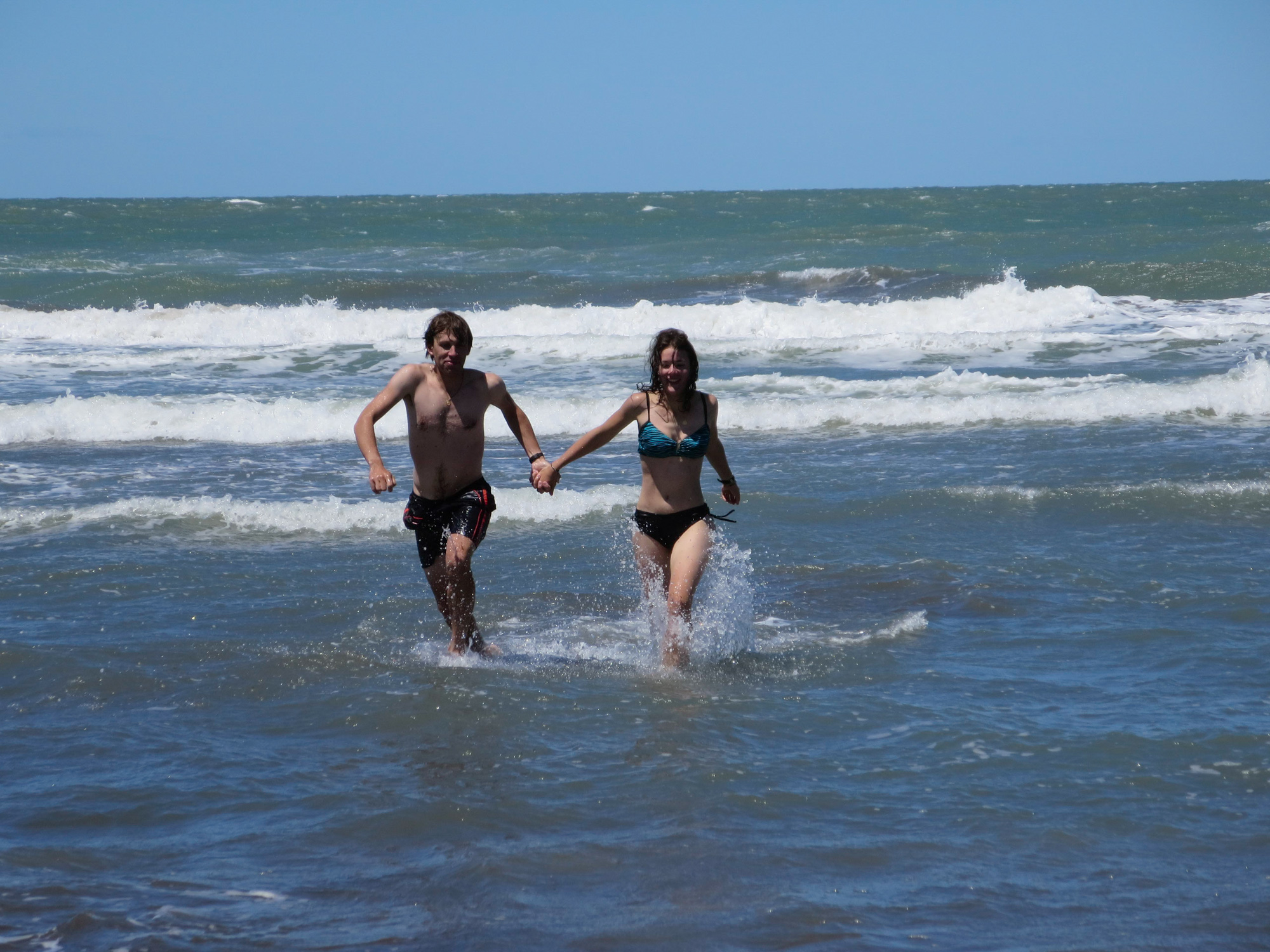 Le lendemain, nous allons prendre notre premier bain de mer de l’année et jouons pendant une bonne heure dans les vagues.