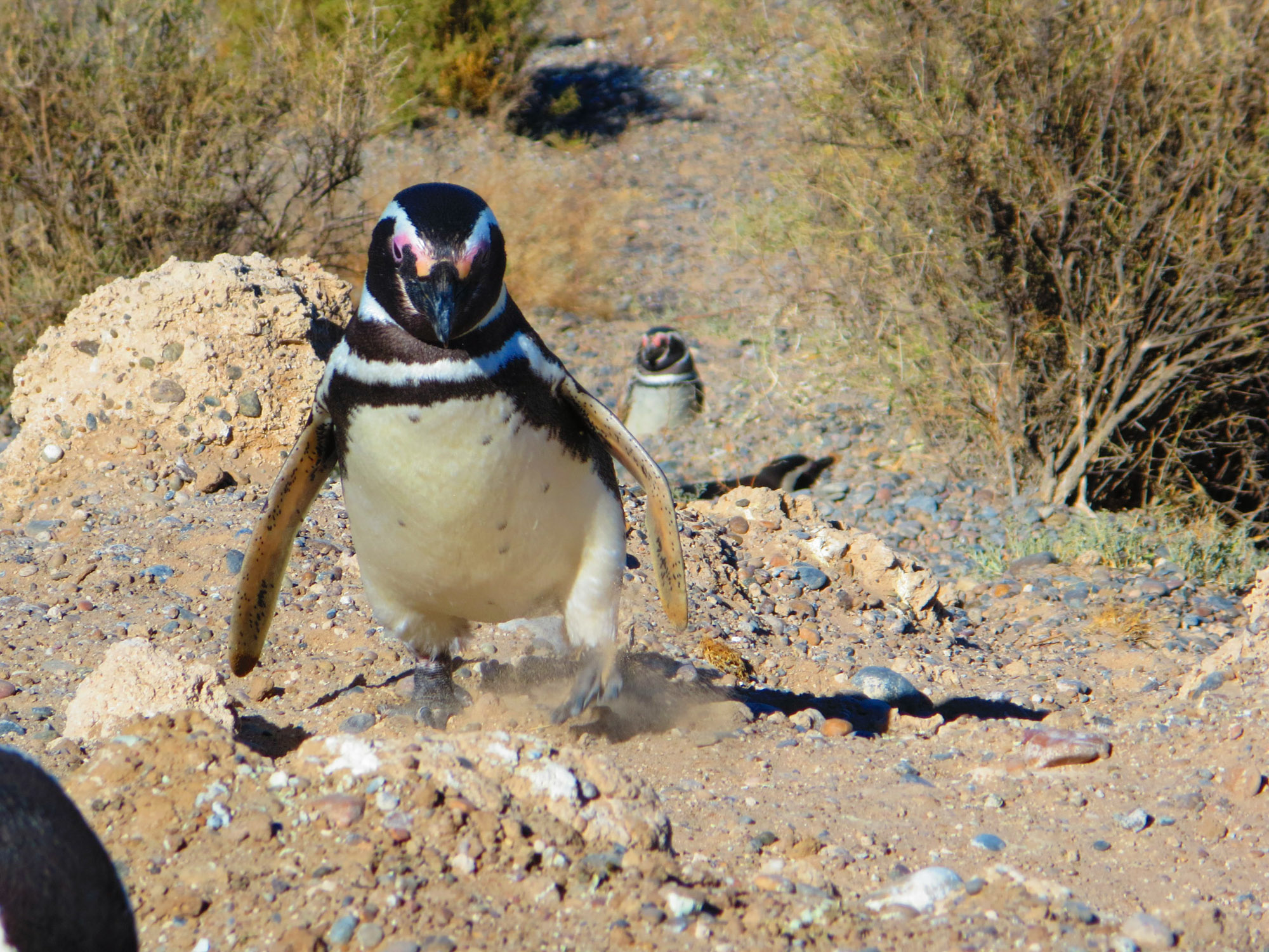 A côté, des mâles en manque d’affection appellent désespérément. Et on vous le donne en mille: le cri du pingouin de Magellan en rut ressemble au braiement d’un âne. D’autres gros bras se poursuivent en courant ou en glissant sur le ventre le long de la pente. D’autres encore, remontent difficilement mais d’un air déterminé la falaise pour retrouver leur nid.