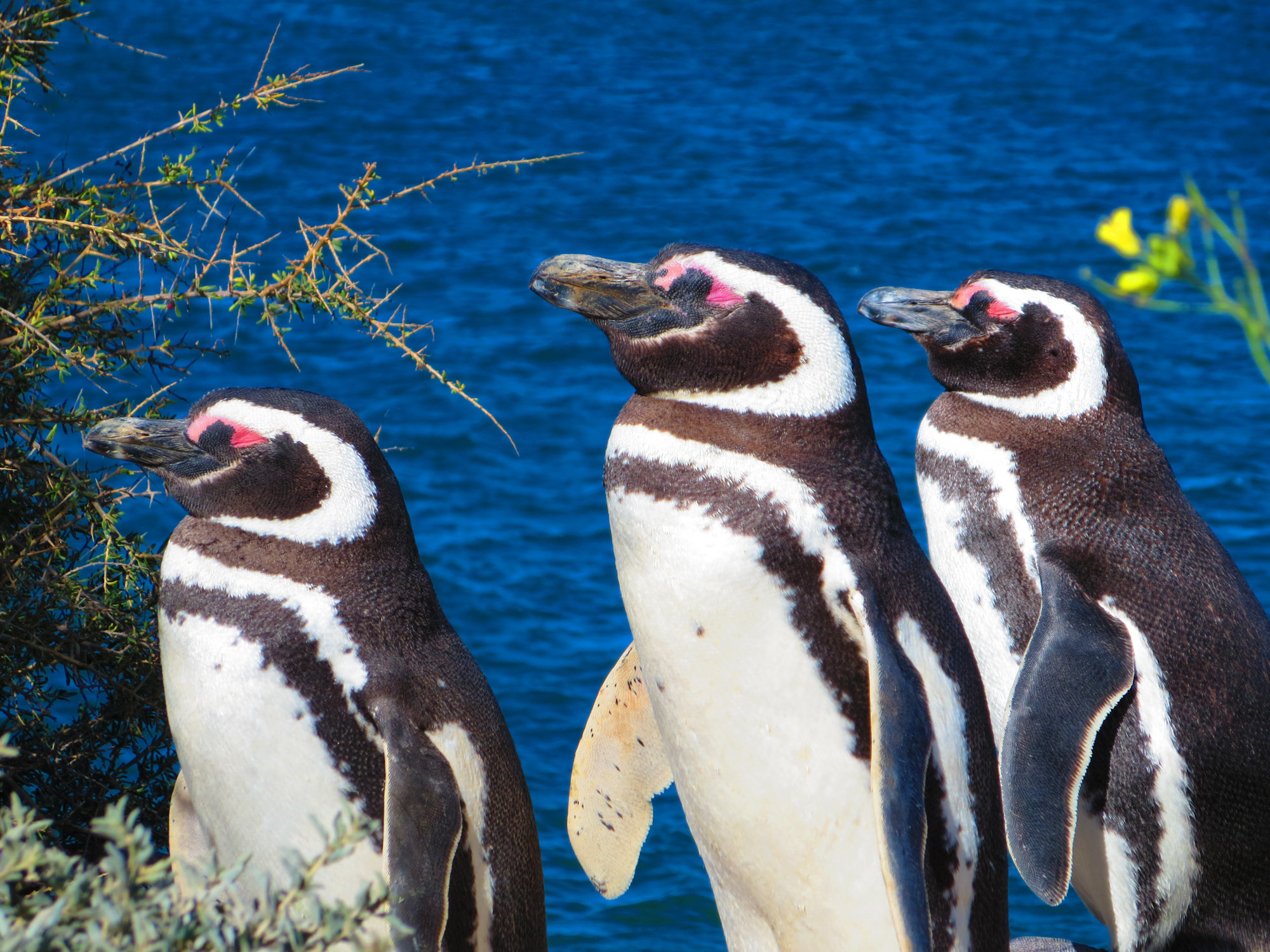Le spectacle le plus sympathique nous est offert, plus loin, par les pingouins de Magellan. Installée sur la pente abrupte d’une falaise, la colonie comporte une bonne centaine d’individus. Ils ont creusé leur nid dans la terre de la falaise. Ceux situés en haut sont à quelques mètres des passerelles aménagées pour les touristes. On peut donc les voir de très près. On dirait même que certains apprécient la présences des bipèdes armés d’appareils-photos. Ils posent dans la lumière rasante de Patagonie en esquissant presque un sourire.