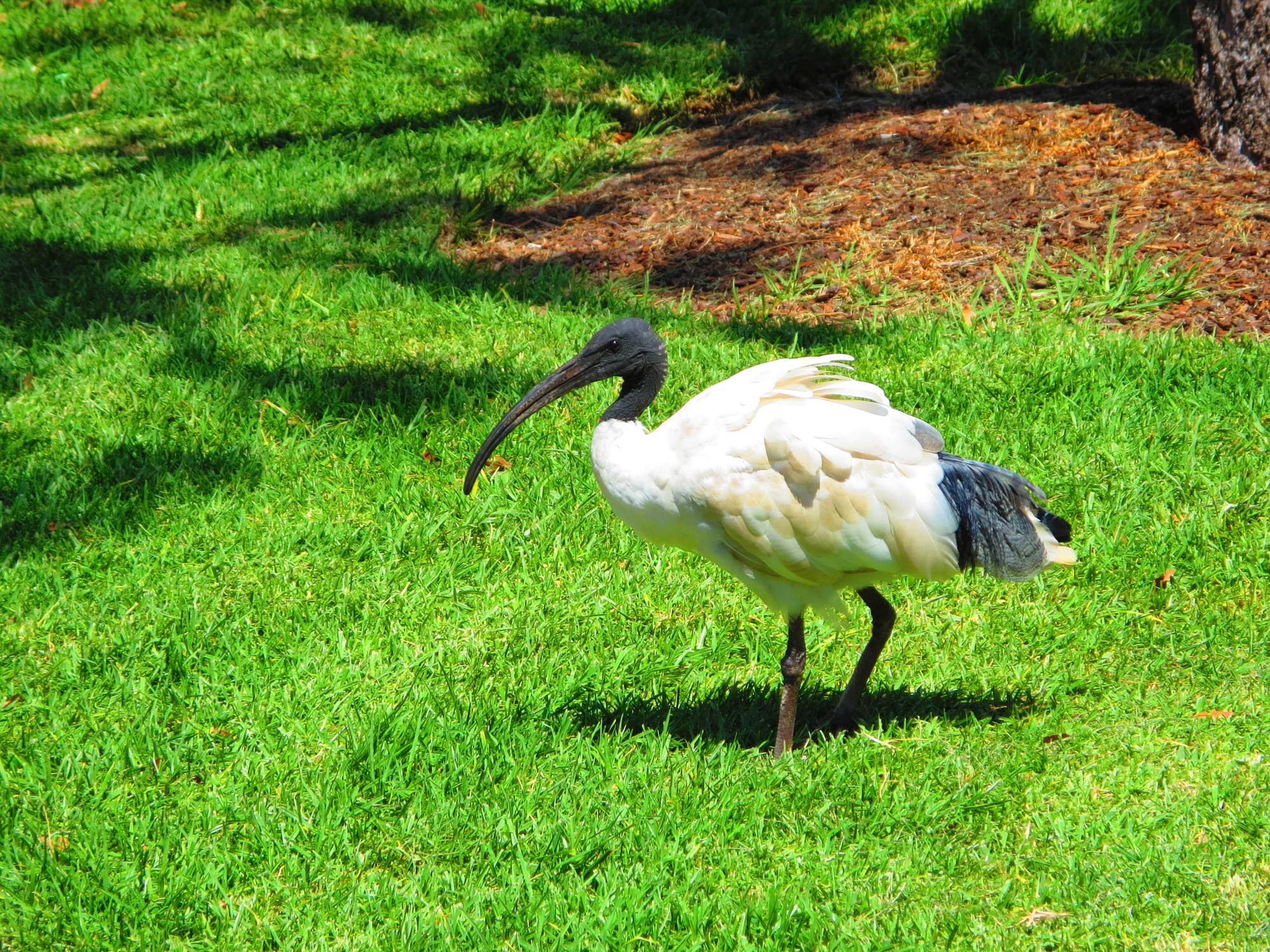 Nous passons par des jardins ou gambadent des ibis noir et blanc qui font les poubelles à l’aide de leur long bec courbé.