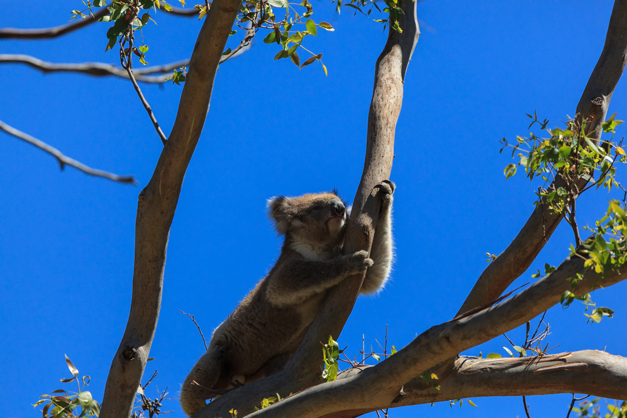 Nous longeons sur une vingtaine de kilomètres, la point du cap Otway avant de revenir vers notre camp. Après les kangourous aperçus la veille, nous rencontrons nos premiers koalas au naturel.