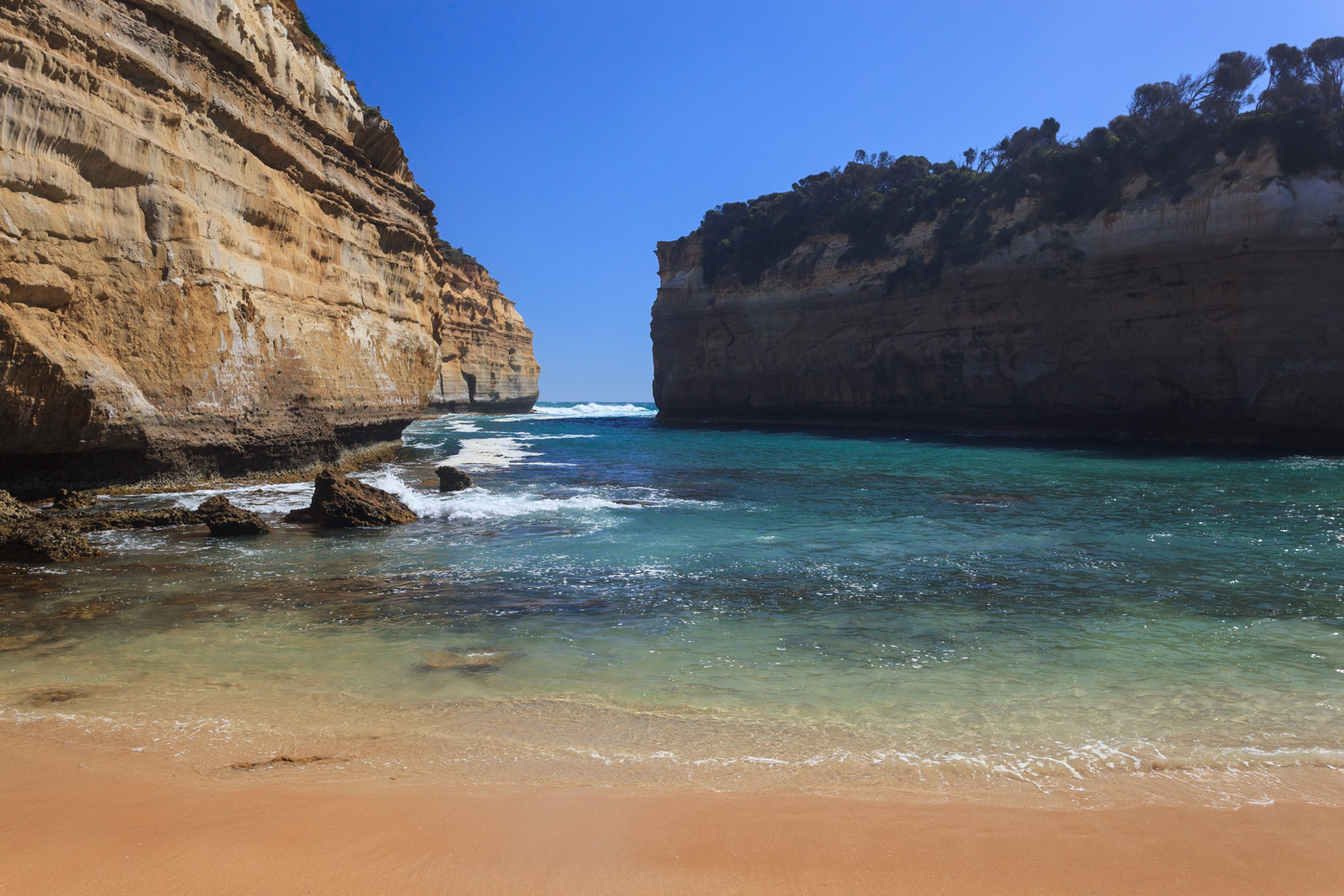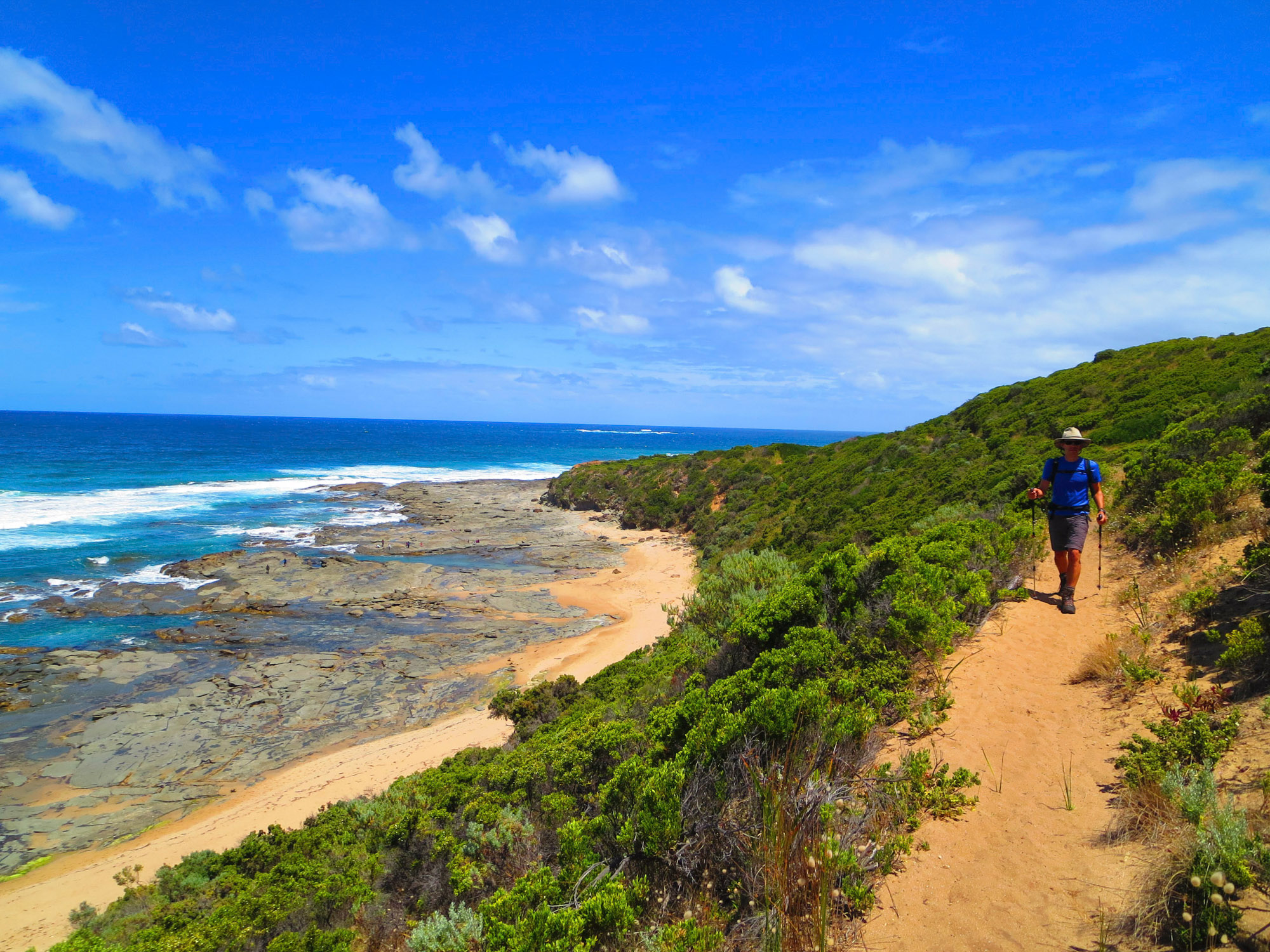 Un magnifique chemin de randonnée a été aménagé parallèlement aux plus belles sections de la Great Ocean Road. La Great Ocean Walk, c’est son nom, chemine au plus près des falaises sur une centaine de kilomètres. Nous empruntons donc, de bon matin, cette superbe sente qui dessert points de vue splendides et petites criques intimes.