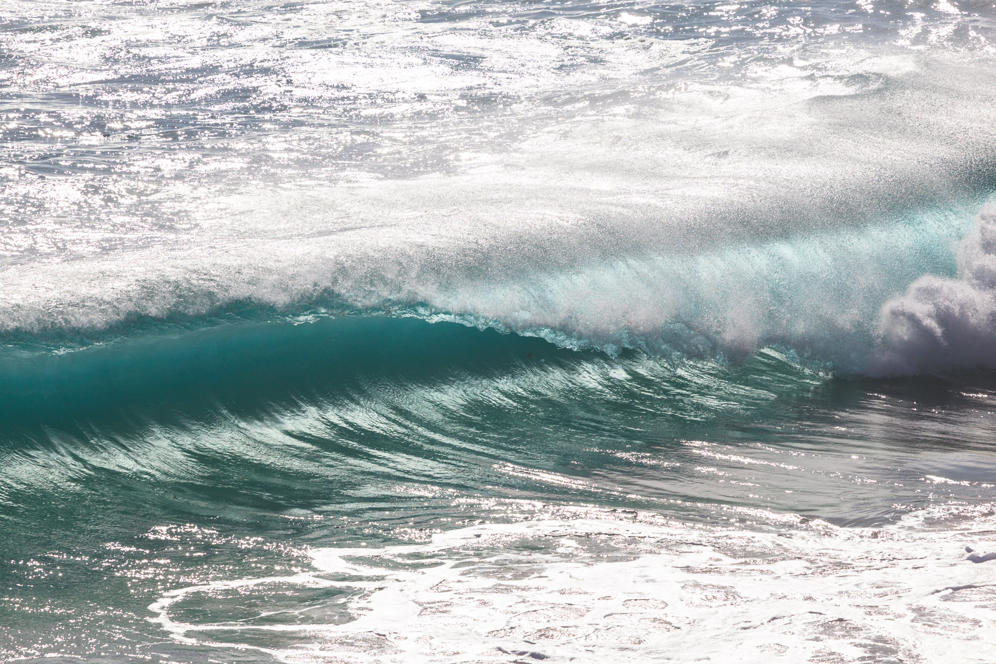 Dans la lumière rasante du soleil couchant, nous ne nous lassons pas d’admirer les beaux rouleaux qui forment de belles volutes avant de se pulvériser sur la plage.