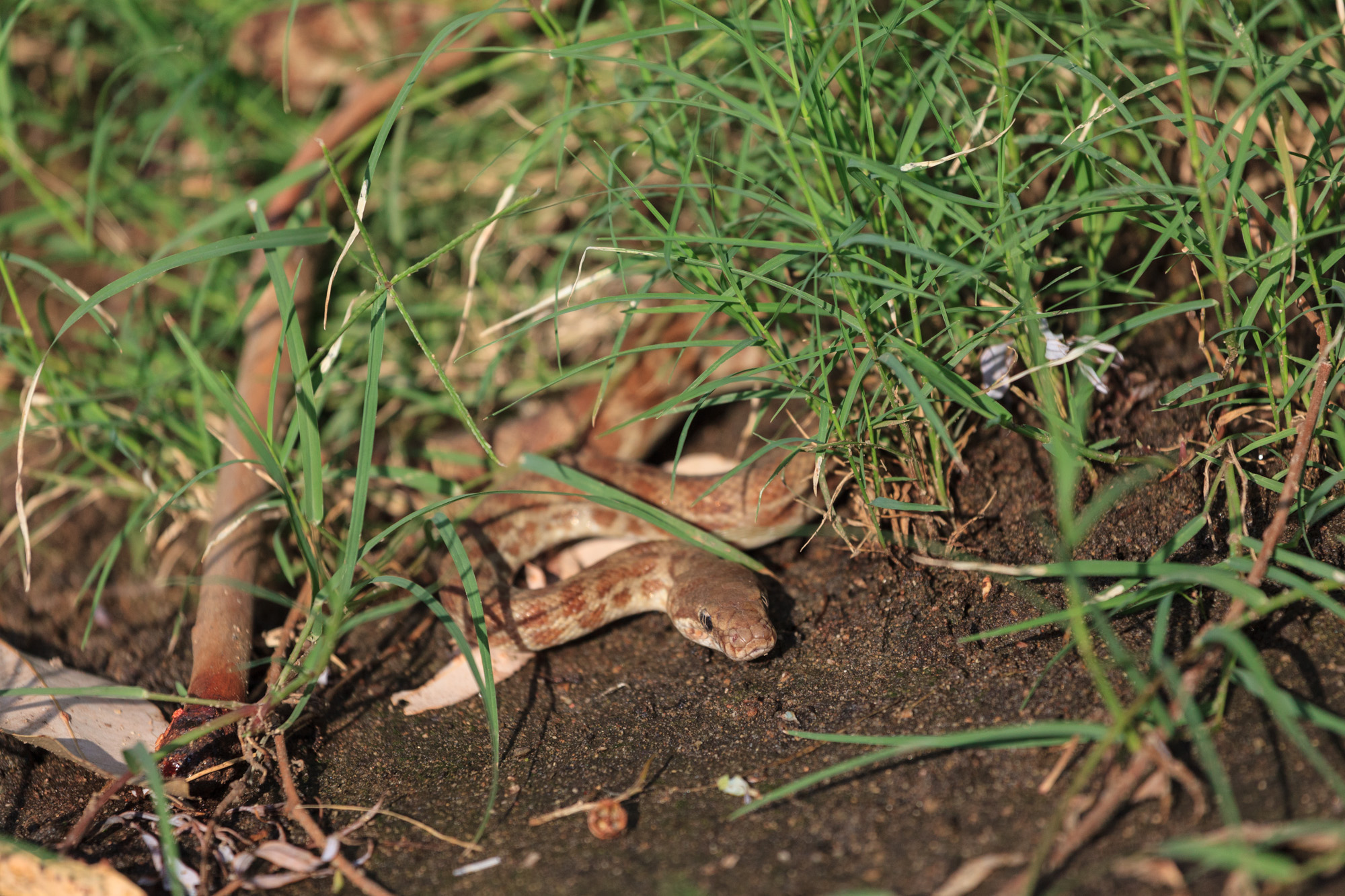 Je vois Nicolas s’approcher de l’eau pour prendre des photos. Il fait brusquement un bond en arrière. Un joli serpent tout entortillé autour des hautes herbes de ce bord de mare. Il est beige avec des taches marron. Un beau petit python, nous confirmera le lendemain notre bushman préféré en voyant notre cliché.