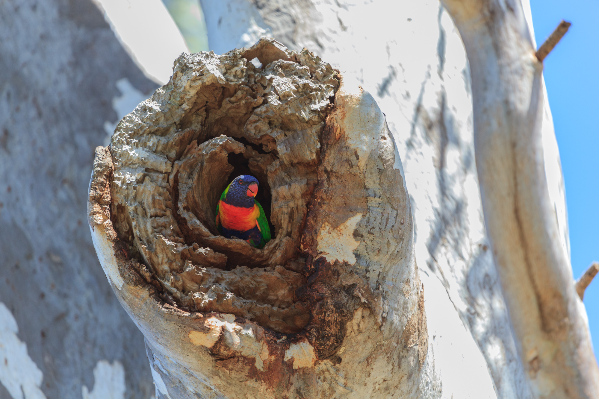 très colorée. Ici, on l’appelle “Rainbow Lorikeet”. Le perroquet arc-en-ciel.