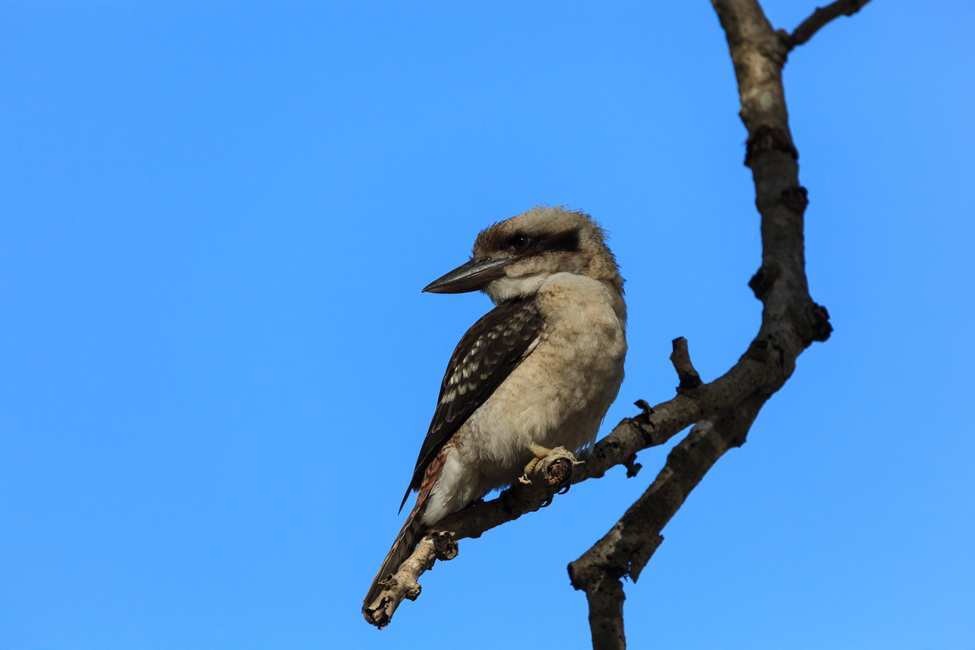 Pour marquer son territoire, il entonne un chant diabolique qui ressemble à un rire de hyène ou d’une troupe de chimpanzés en rut. Dans les vieux films de Tarzan, les bruits de la jungle qu’on entend en fond sonore sont des enregistrements de chant de kookaburra. Le kookaburra est un véritable nettoyeur du bush: serpent, rongeur, insecte, il régule les populations de nuisibles. Un spécimen est venu nous faire une démonstration de sa force lors de notre petit-déjeuner. Il a ramassé un gros morceau de bois qu’il est venu frapper sur notre table à quelques centimètre de nous.