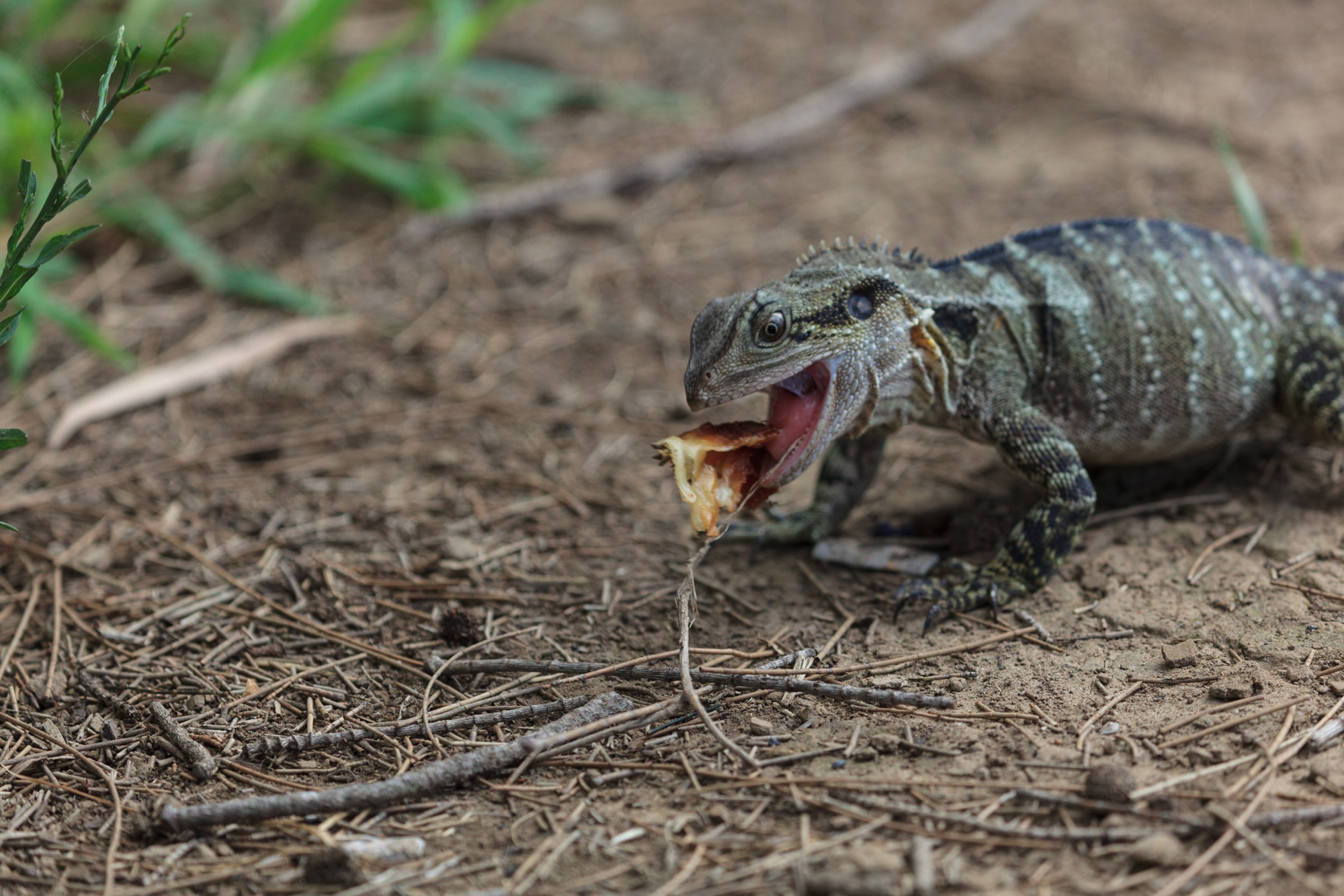 quand il arrive sur la place, ça met la pagaille chez les piafs. L’iguane monte aux arbres et pille les nids. Il se déplace avec ce déhanchement caractéristique des varans en tirant une immense langue fourchue.