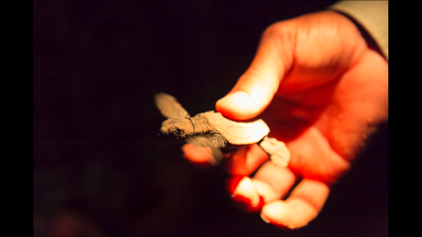 Une fois la mer atteinte, les petites tortues disparaissent. Impressionnant de constater comment la nage leur parait si naturelle alors qu’elles sont nées sur terre.