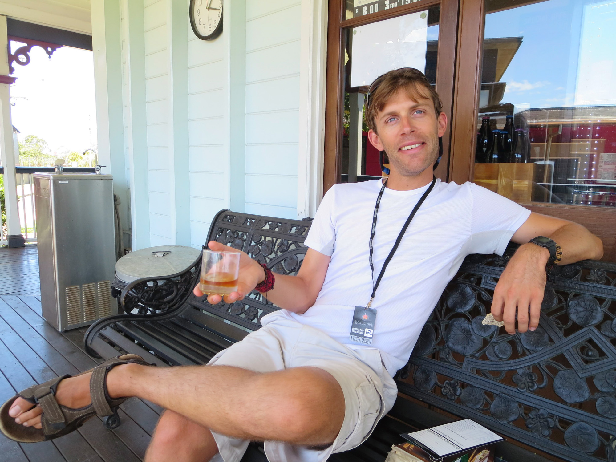 Nous sommes en effet dans la région de la canne à sucre. L’Australie possède une industrie sucrière, un peu en recul, soit dit en passant. Le sucre de canne, comment ça marche? Le principe est d’écraser la canne à sucre pour en extraire le jus. Le jus est porté à haute température. Une partie se cristallise: le sucre. Le sirop qui reste est appelé mélasse. A la fin du XIXe siècle, la région est en surproduction et on ne sait pas quoi faire des quantités colossales de mélasse. Un producteur propose alors de transformer cette mélasse en rhum.
