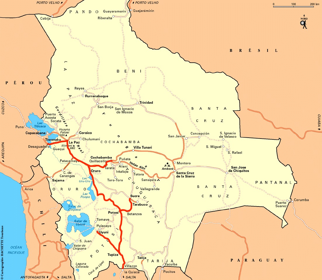 Notre itinéraire prévu en Bolivie: