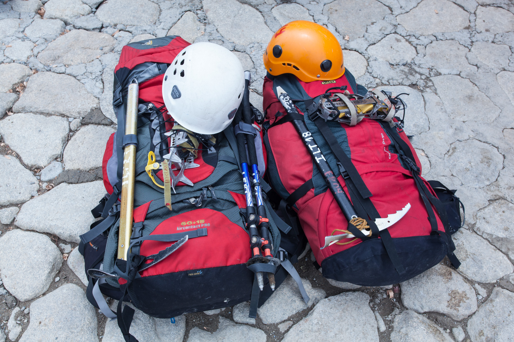 Une fois l’agence trouvée, nous essayons le matériel (chaussures de glacier, crampons, piolet, salopette, baudrier, casque…). Les jours précédents, nous avons parcouru les marchés de rue de La Paz à la recherche de dessous en “Angora sport” (des leggings avec du poil de lapin si vous préférez) et des grosses chaussettes (on en porte deux paires dans les chaussures de glacier).