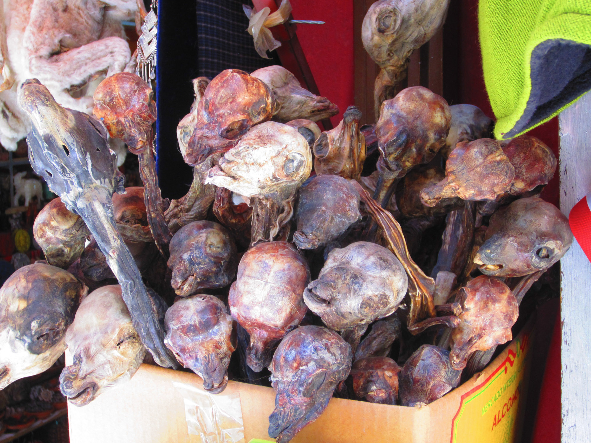 Nous avons vu de nombreux foetus de lama que l’on enterre sous sa future maison avant de faire construire. Des amulettes et statuettes pour attirer fortune et fertilité dans le couple…jusque-là tout va bien.