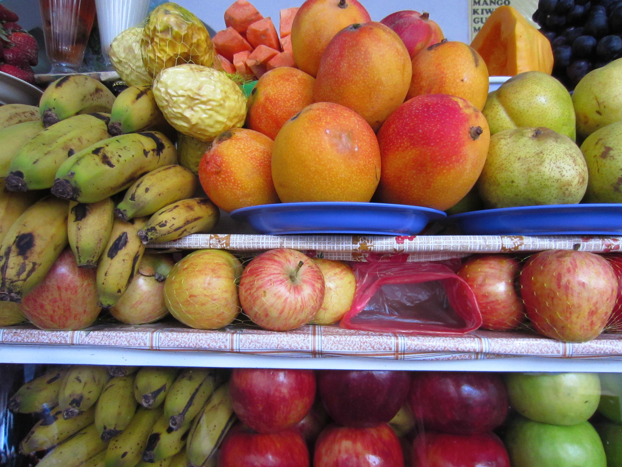 Par ailleurs, les gens d’ici se nourrissent bien. En observant les Péruviens dans la rue, je me suis rendue compte que peu d’entre eux portaient des lunettes, même les personnes en âge d’être presbyte. Deux raisons possibles me disais-je: soit les lunettes sont trop chères, soit la population péruvienne est génétiquement prédisposée à avoir des “yeux de Sioux” toute leur vie (il y a bien des ethnies qui sont prédisposée à ne pas avoir le vertige). Une conversation avec notre guide de Huaraz nous a permis de savoir que cet état de fait est dû à la richesse de l’alimentation. Dès leur plus jeune âge, les enfants sont élevés aux jus naturels de fruits et mangent des céréales riches en protéines. Notre guide nous a appris que ce régime alimentaire suivi tout petit garantit à l’adulte une bonne santé toute sa vie. On aurait même retrouvé des momies qui avaient toutes leurs dents alors que la personne était morte à soixante ans…