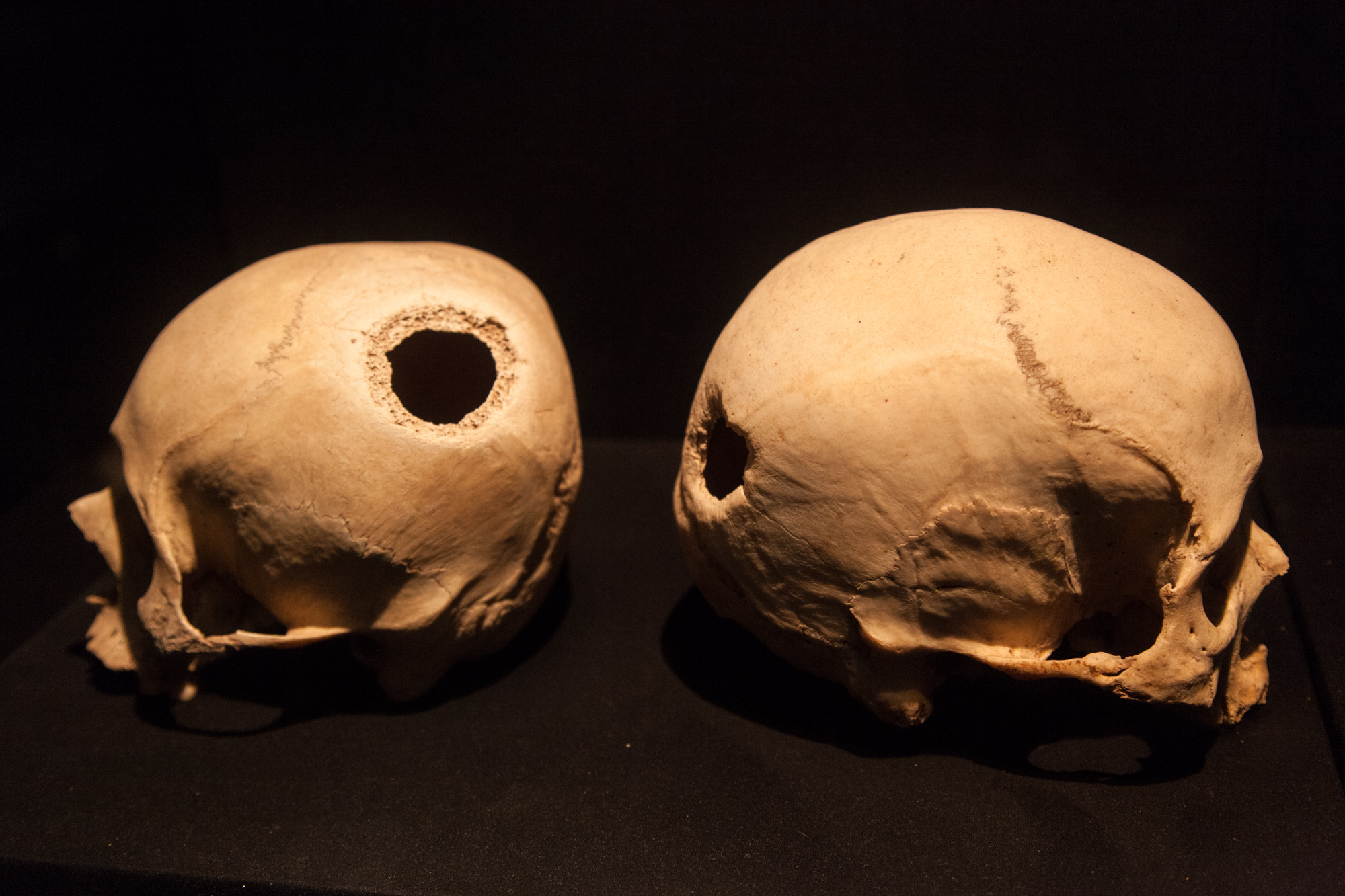 - Une autre pratique étonnante: il existe des preuves de trépanations curatives réussies. On ouvrait le crâne des blessés après les batailles (rituelle ou guerrière) ou les accidents afin de soulager des commotions cérébrales ou d’extraire des tumeurs. On refermait le tout avec une plaque de métal précieux.