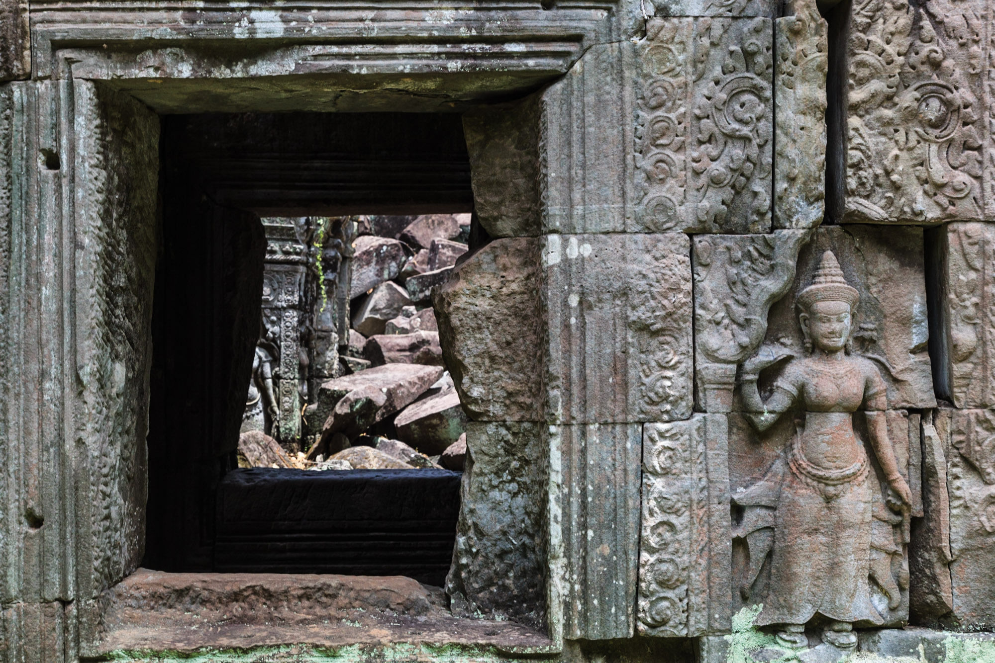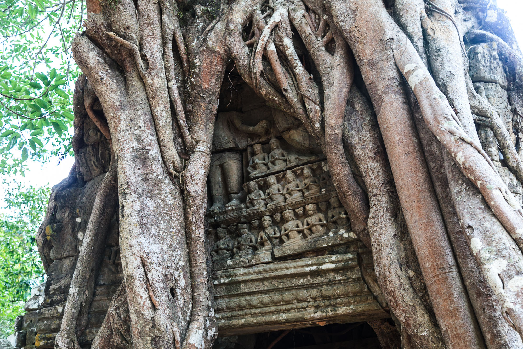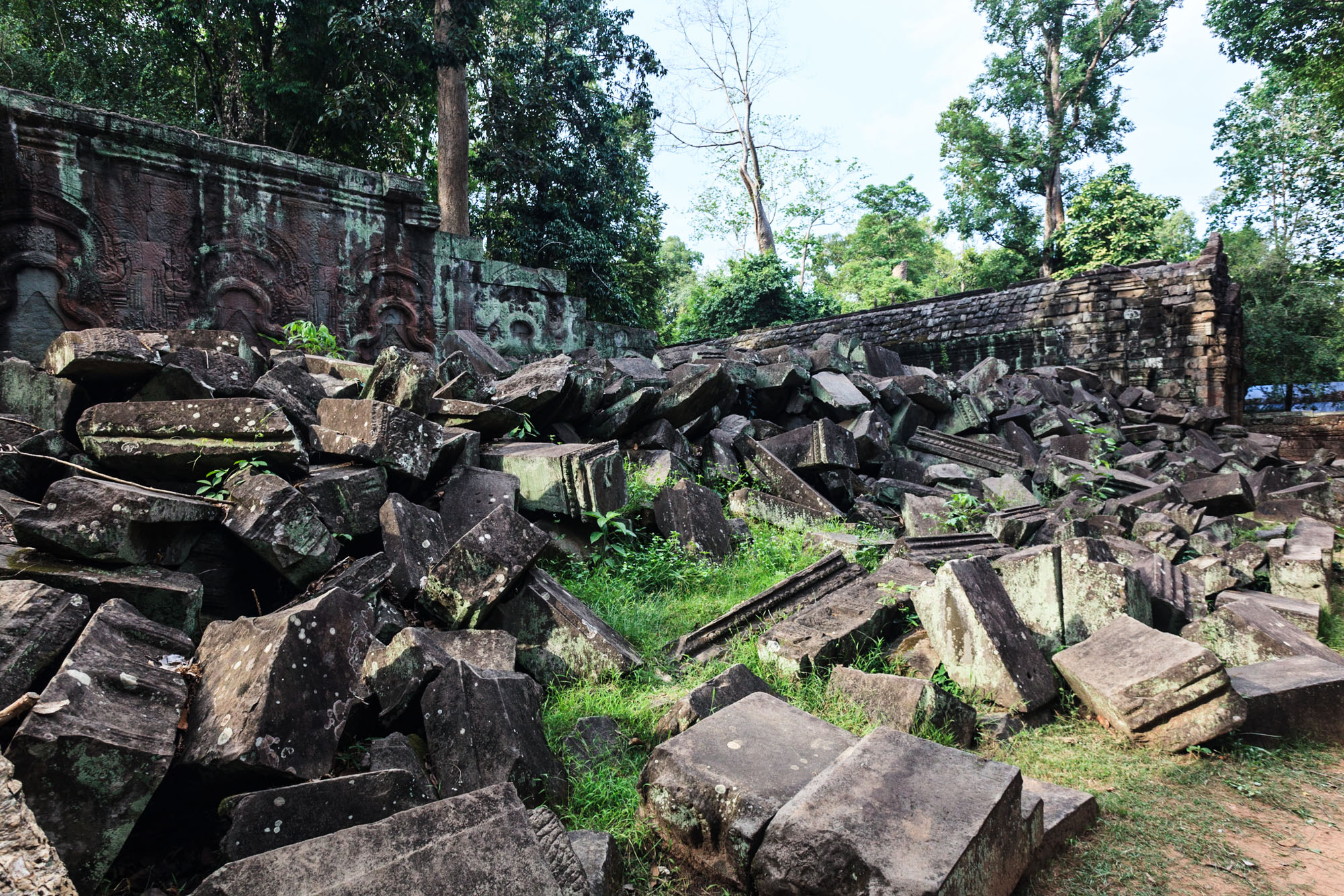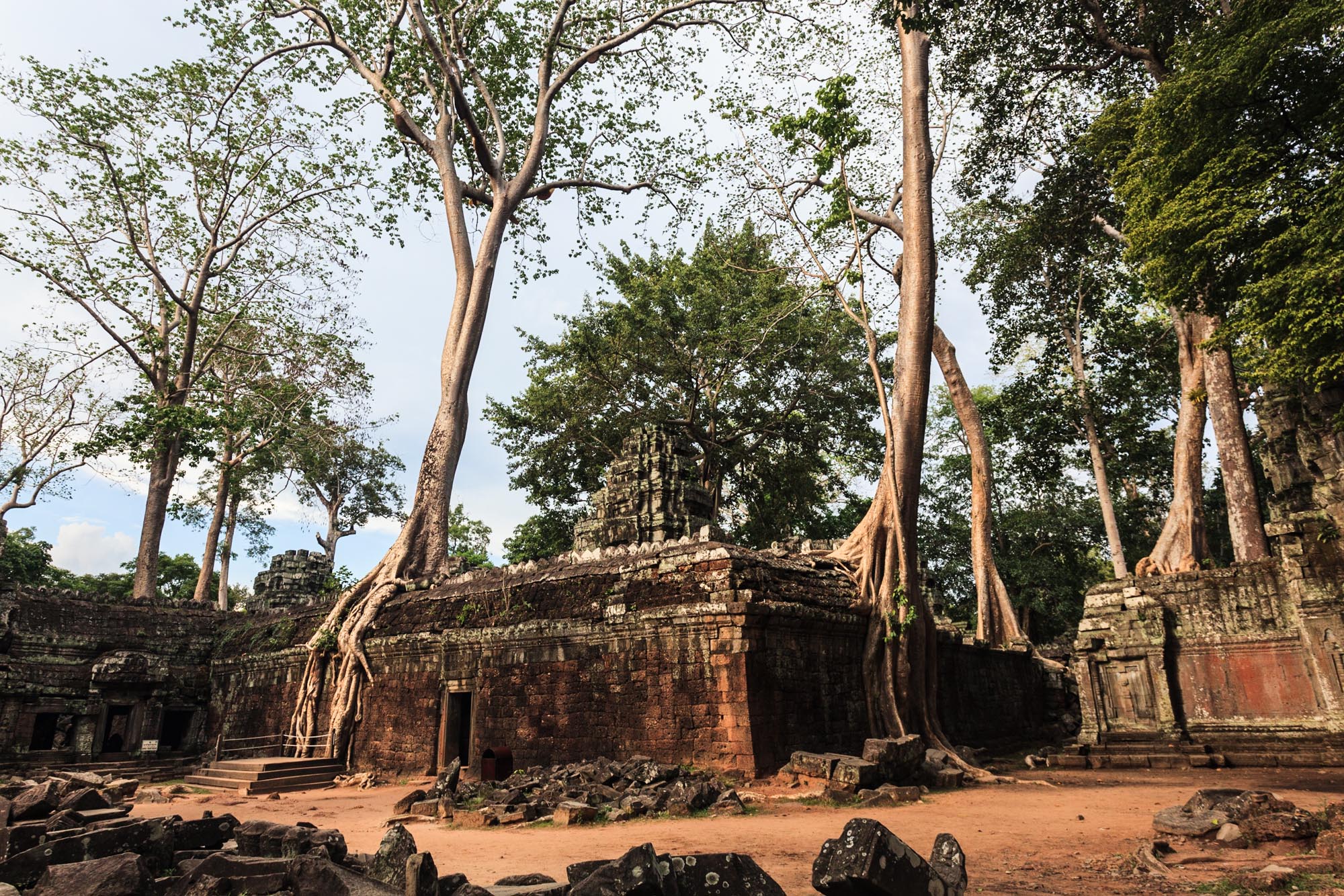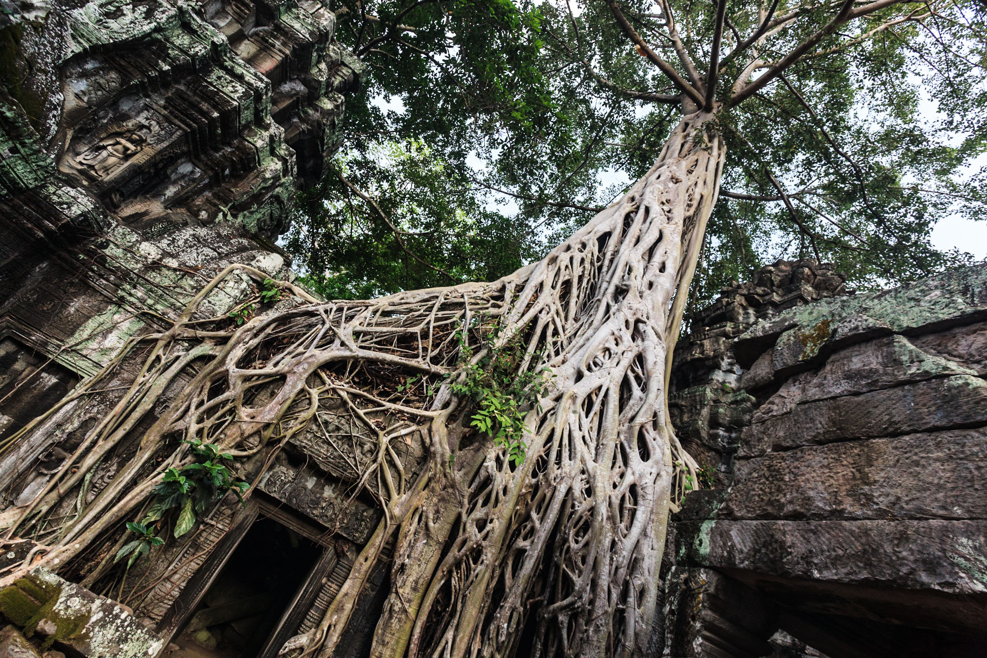 La nature reprend ses droits et la jungle envahit les temples. Les fromagers, dont les racines s’immiscent dans n’importe quelle anfractuosité, descellent des blocs et créent de nombreux écroulements. C’est certainement aussi ce qui donnera aux ruines d’Angkor leur caractère si romantique.