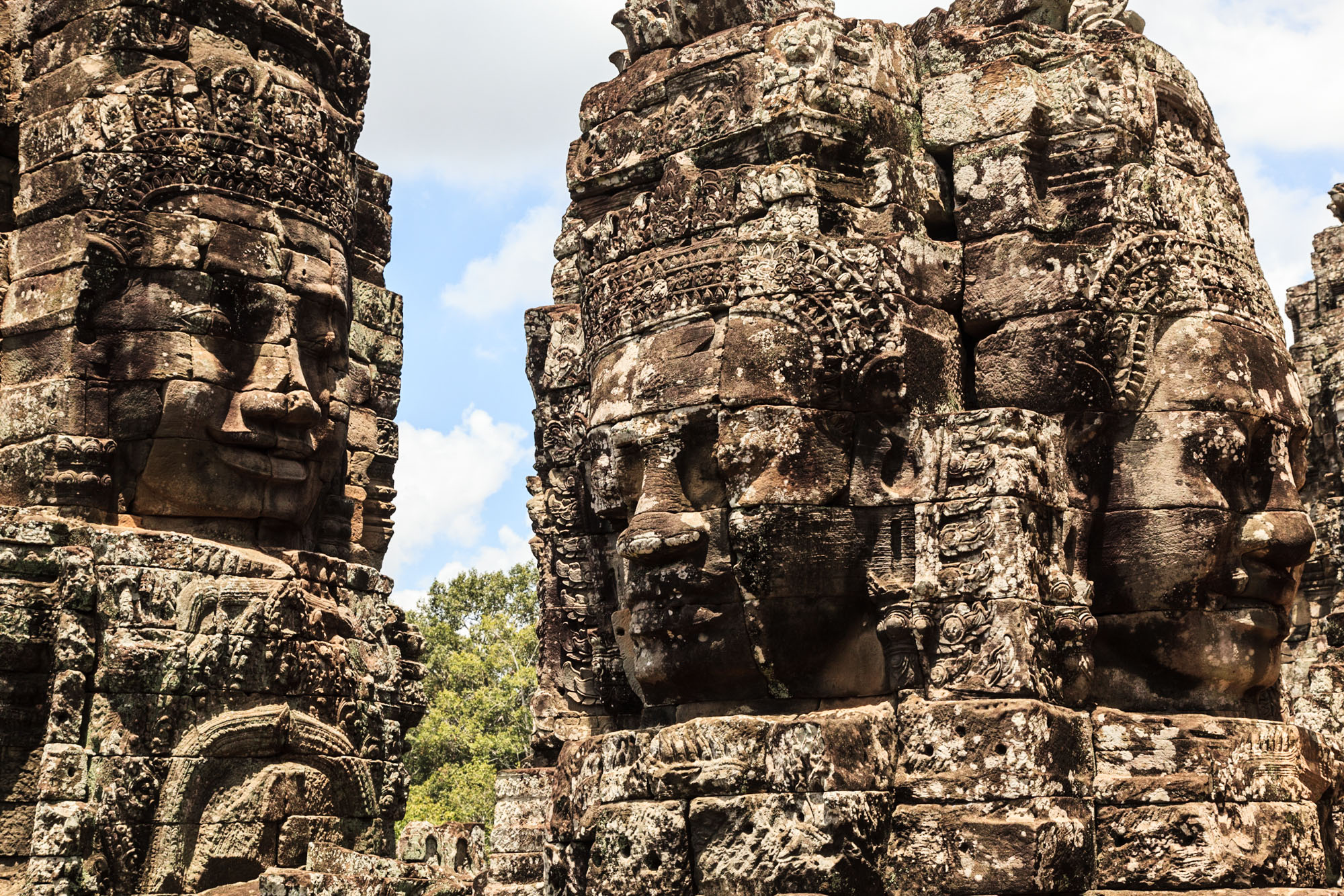 Les mystérieux visages tournés vers les 4 points cardinaux du temples de Bayon. Difficile de ne pas se remémorer les Moais de l’ile de Pâques…