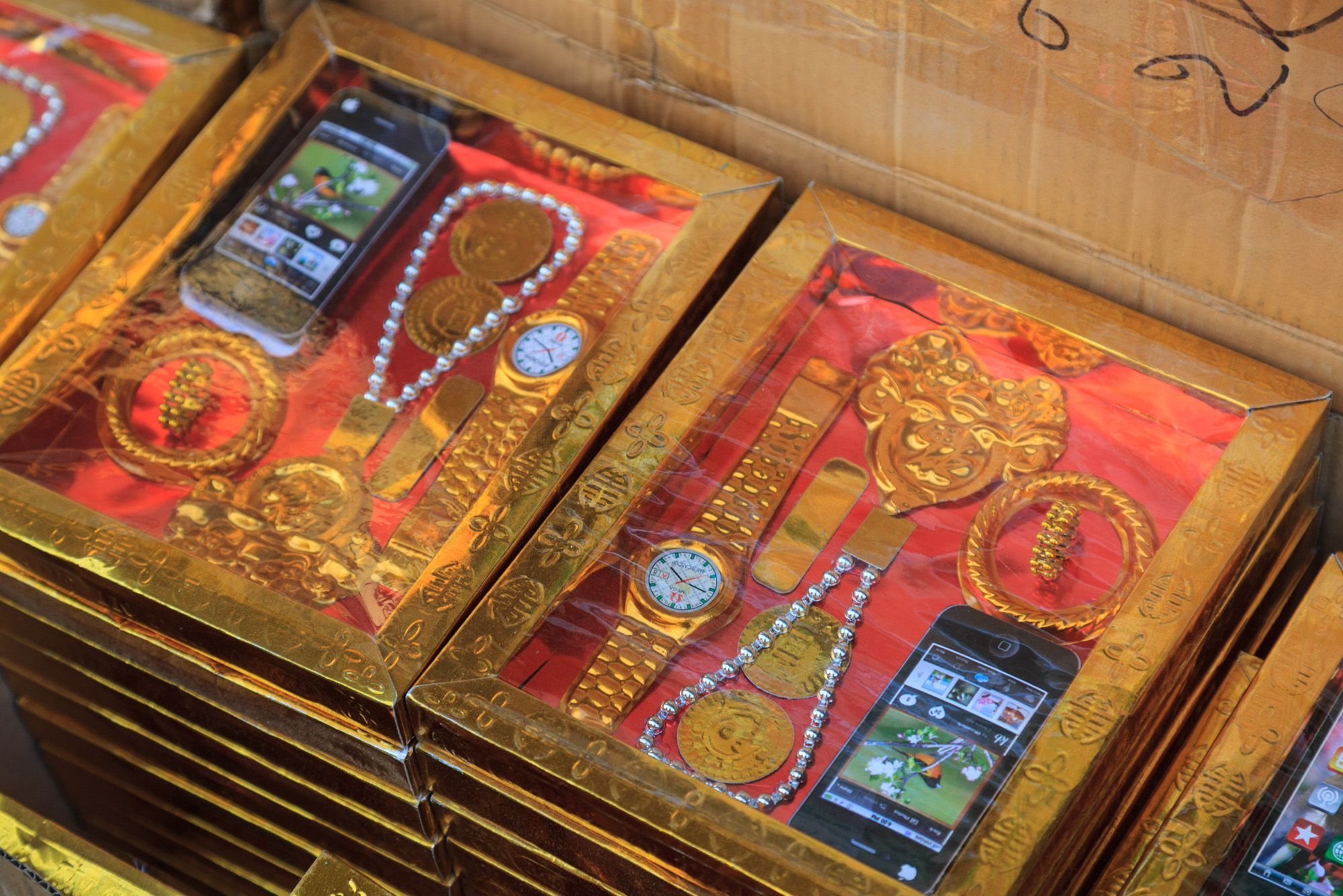 C’est donc dans un cadre privilégié que nous découvrons Phnom Phen. Nico nous accompagne parfois dans la découverte de la ville. En passant par le marché Orussey, il commente les étalages de produits insolites. Nous découvrons ainsi qu’avant une cérémonie de crémation, on achète au défunt des représentations en carton et en plastique de tout un tas de biens matériels afin que le mort puisse vivre dans l’opulence lors sa prochaine vie. Des magasins se sont spécialisés dans le commerce de panoplies de montres Rolex, bijoux Cartier, costumes Armani, maisons hollywoodiennes et voitures de luxe… en toc.
