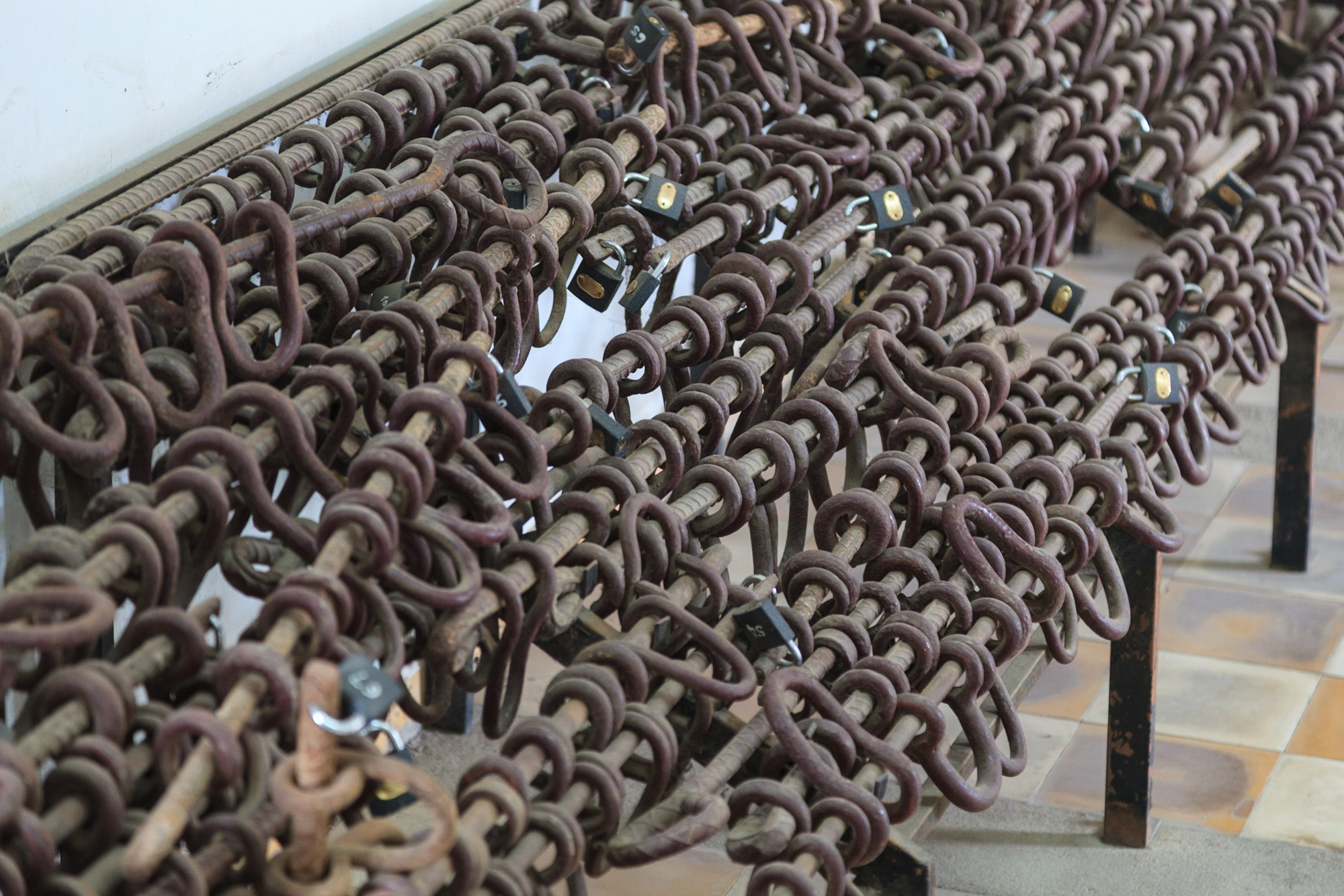 Plus loin, on peut voir sur des affiches constituées grâce aux témoignages des sept personnes qui ont survécu au camp, portant sur les différentes techniques de tortures utilisés par les Khmers rouges. Electrocution, noyade, découpage à vif des doigts et des seins, arrachage des dents, utilisation de scorpions, pendaison par les pieds pendant des heures… Les tortionnaires les plus jeunes (parfois pas plus qu’une dizaine d’années), endoctrinés par leur ainés de l’Angkar étaient, parait-il, plus sadiques que les adultes.
