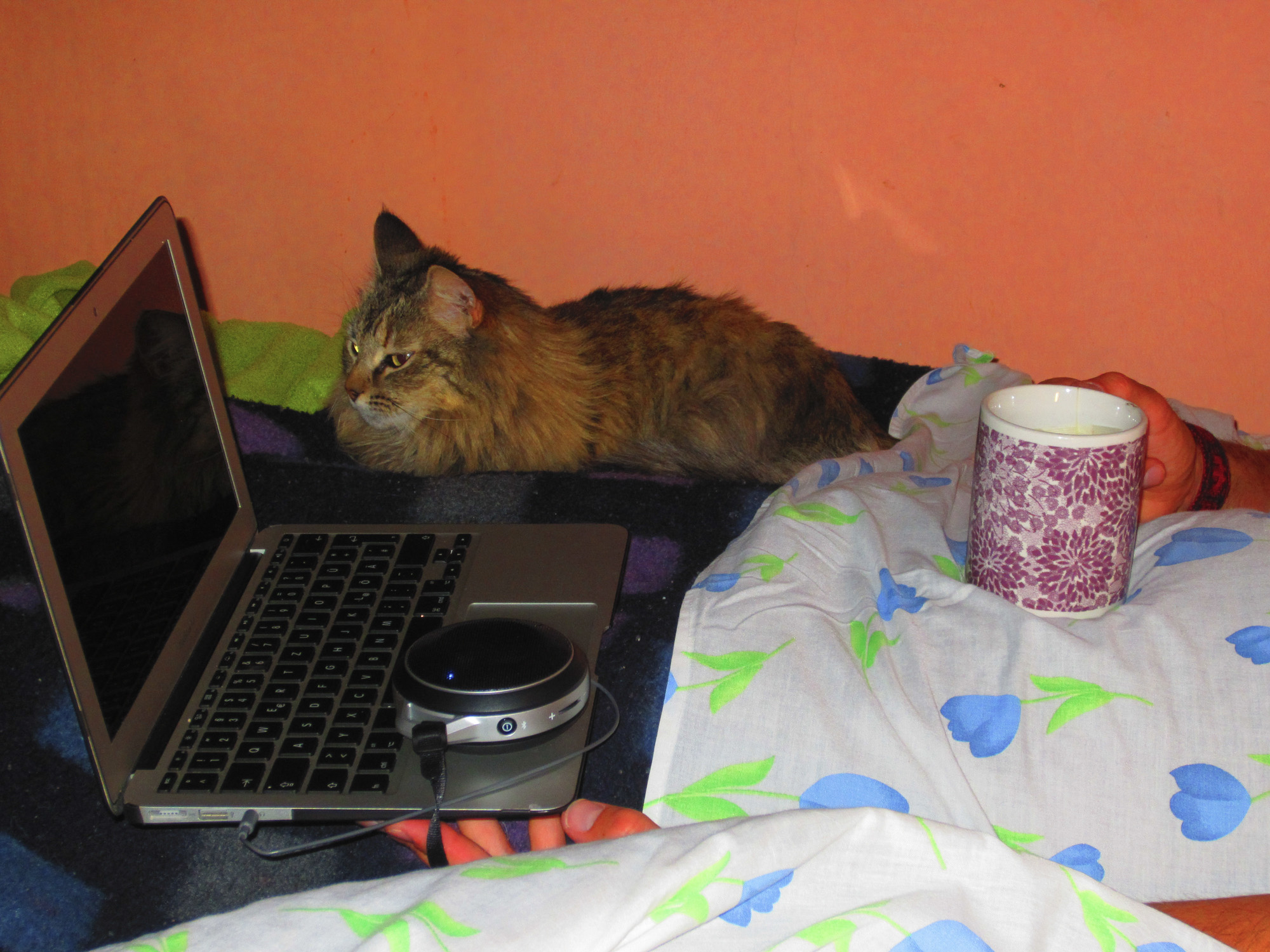 La soirée s’achève sur un goût de trop peu. On aurait bien voulu rester plus longtemps avec Alain Maury pour partager un peu plus et apprendre… encore plus. Mais il est déjà tard dans la nuit. Nous rejoignons notre chambre et Mitsi affalée sur le lit. La chatte s’est faufilée dans notre chambre, à notre insu, alors que Nicolas fermait la porte avant de partir pour la soirée.
