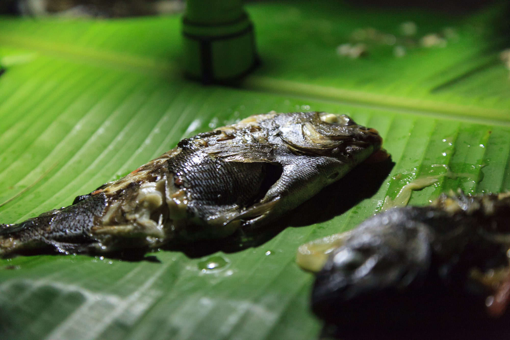 Matthias, dont nous apprenons qu'il est en fait le cousin de Keka, tient ses promesses. Une fois rentrés, nous nous installons dans le jardin autour du feu où cuisent des pissis, de larges poissons argentés typiques de l'île de Pâques. Pour mettre la table, Matthias arrache une feuille de bananier et dispose les poissons cuits directement dessus. On mange avec les mains en compagnie des autres voyageurs et de la famille d'accueil. Soirée très sympa !