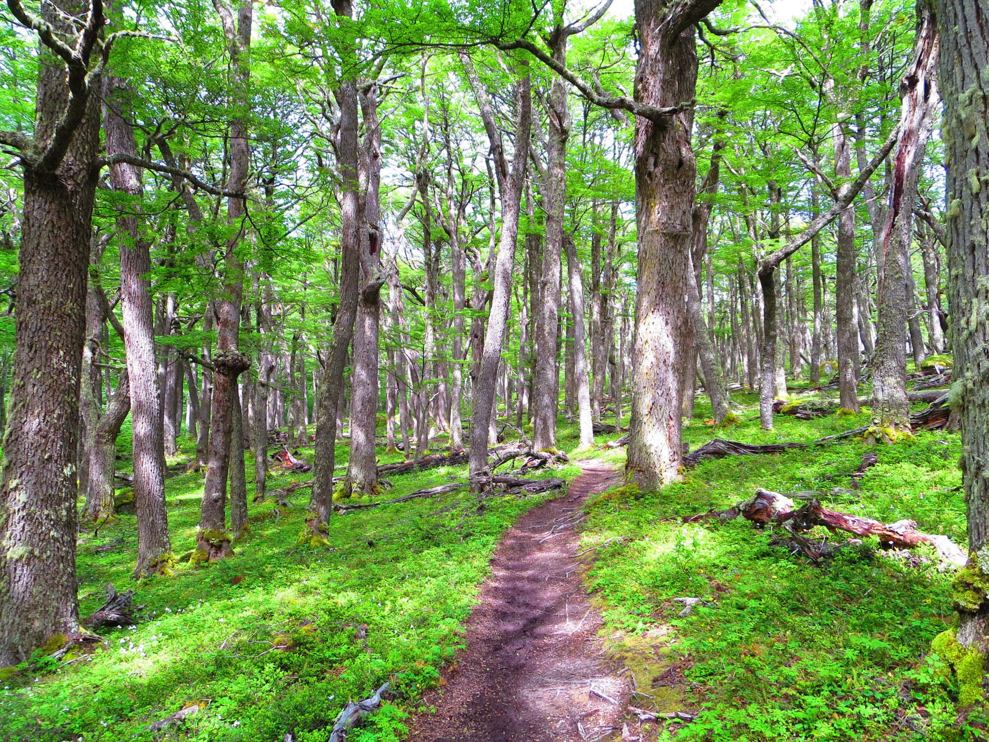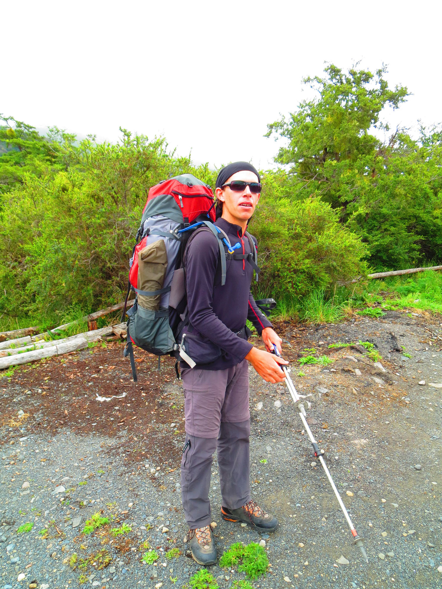 Aujourd’hui, c’est un peu comme le cirque de la solitude du GR20. Nous avons devant nous la plus grosse étape en terme de longueur et de difficulté. Le parcours fait 25km et comprend un passage de col à 1200m. En effet, nous doublons une étape pour arriver, ponctuels, au rendez-vous donné au Refugio Grey aux parents de Nicolas. Par ailleurs, nous souhaitons nous donner deux chances de pouvoir passer le col au cas où la traversée serait rendue impossible par de mauvaises conditions météo. On raconte que des gens ont dû redescendre la veille à cause de la neige et du brouillard.