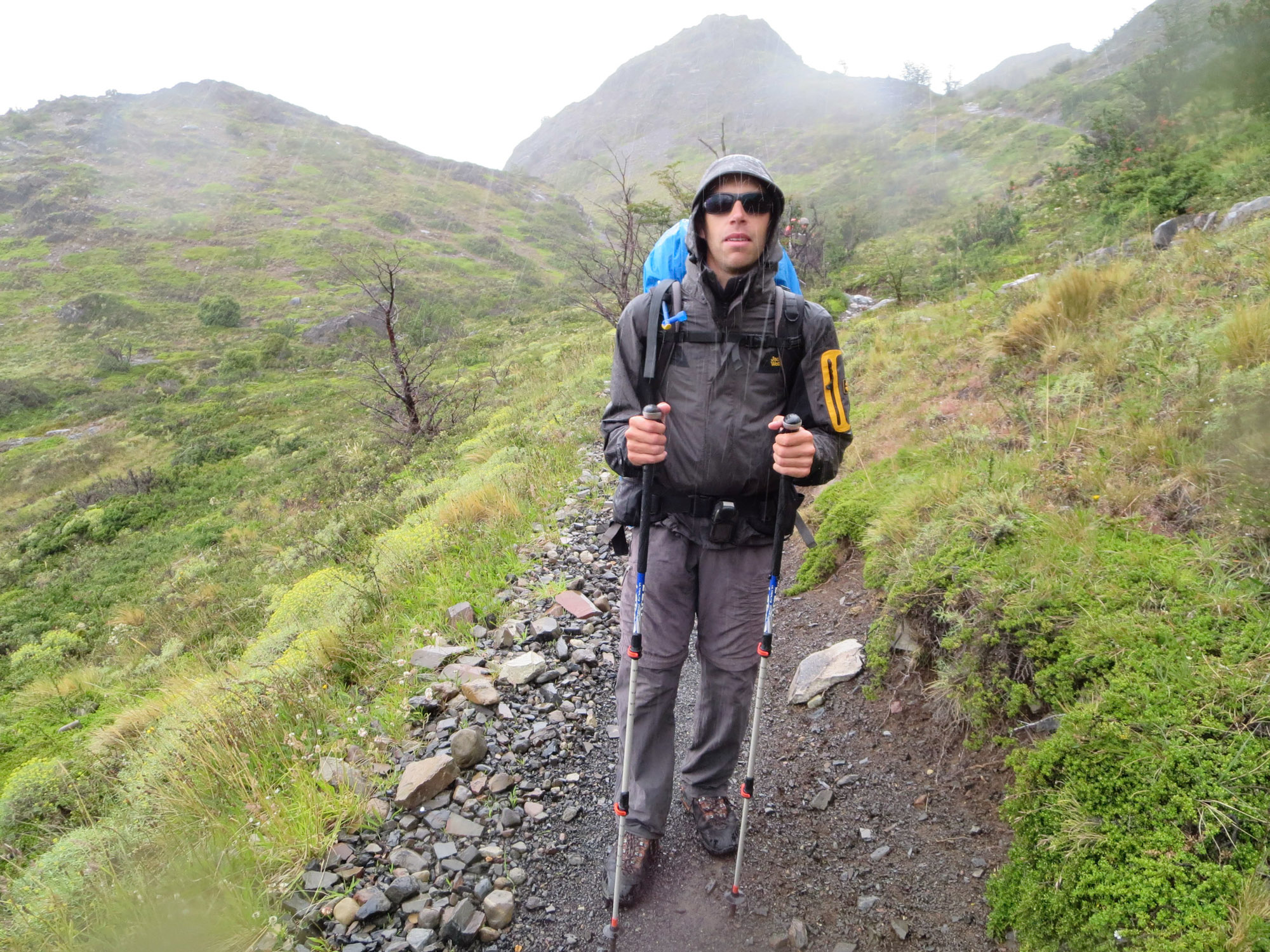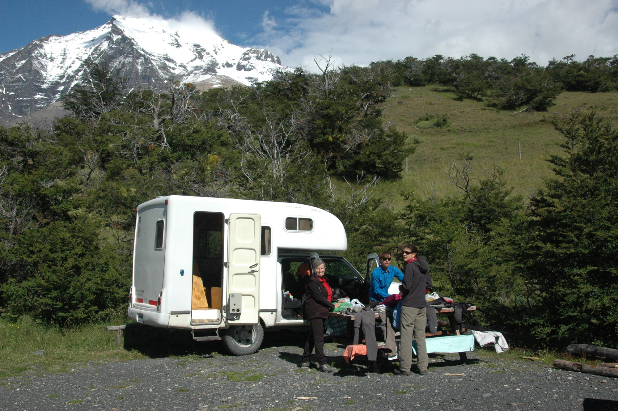 Une étape sans grand intérêt, qui consiste à rejoindre le Campamento Los Torres avant d’effectuer le sprint final vers les Torres del Paine. Il pleut sans discontinuer ce jour-là. Nous rejoignons le camping-car des Rémichelle et tentons de faire sécher nos vêtements. Michelle et Rémi arrivent quelques heures plus tard, trempés jusqu’aux os eux aussi.