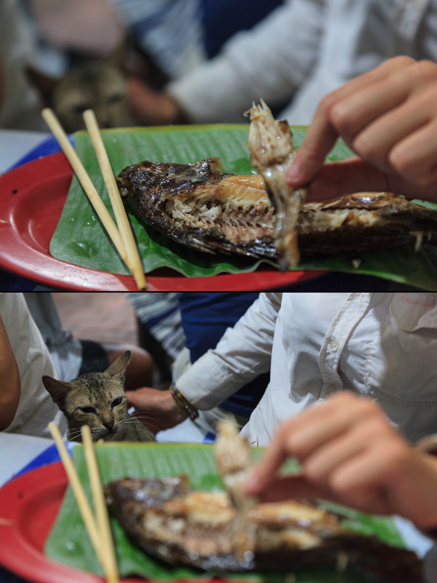 Pour un ou deux Euros en plus, on a droit à d'excellents poissons du Mékong qui provoquent irrémédiablement la convoitise de nos amis felidea.
