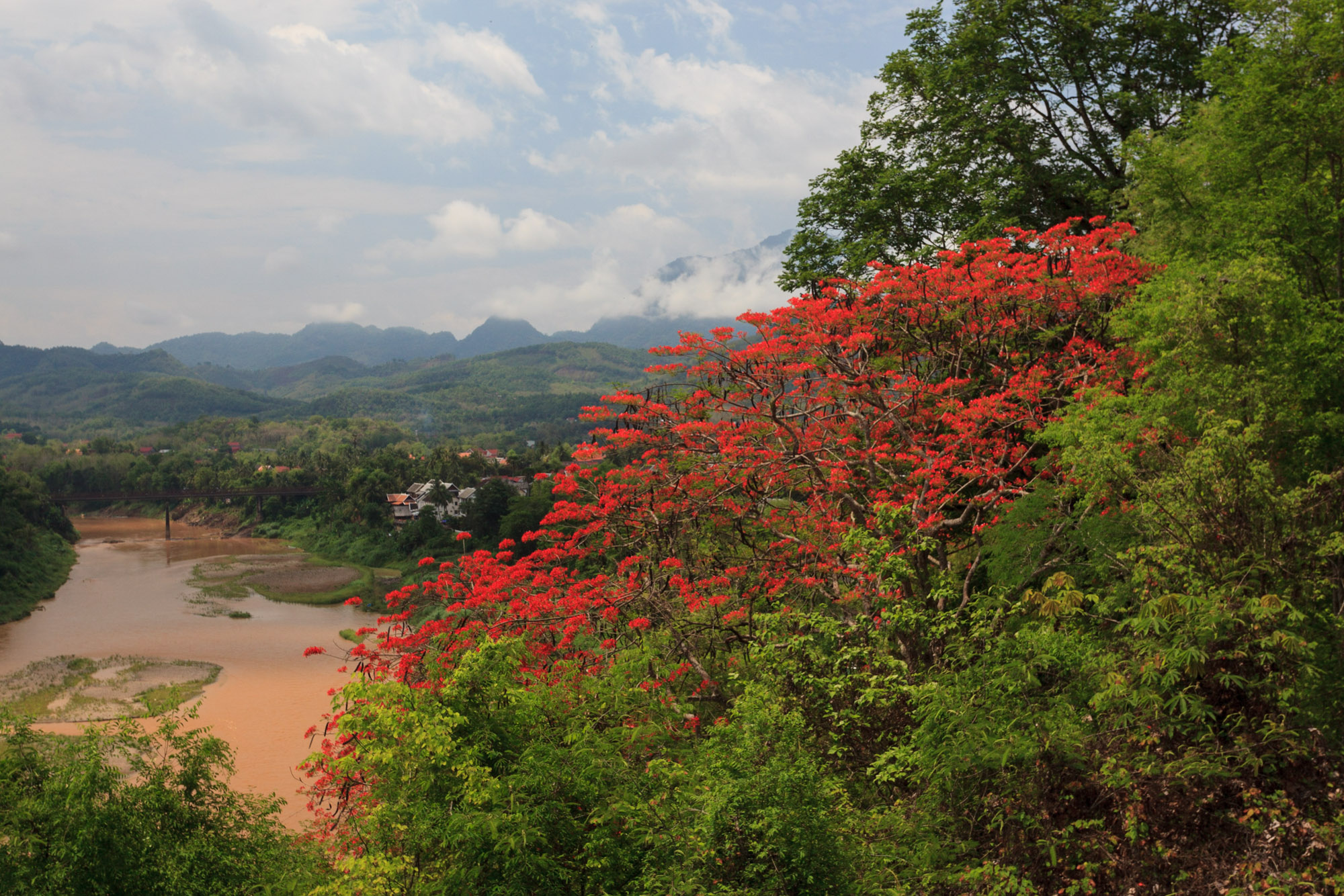 Luang Prabang est située à 400 km au nord de Vientiane. La ville repose sur une langue de terre tout en longueur coincée entre le Mékong et la rivière Nam Kane. La colline sacrée qui constitue son coeur offre une vue magnifique sur les collines environnantes, recouvertes d'une jungle épaisse, et sur les cours d'eau majestueux. Pour parfaire le paysage, les flamboyants orange ajoutent des teintes éclatantes au tableau. En raison de cette situation exceptionnelle et de sa grande richesse culturelle, Luang Prabang a été classée au Patrimoine de l'Humanité par l'UNESCO.