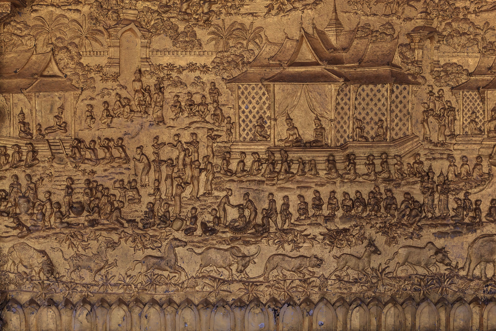 Les portes sont magnifiquement sculptées avec des scènes de vie du Bouddha, du Ramayana ou tout simplement des représentations de la vie quotidienne de Luang Prabang aux temps anciens.