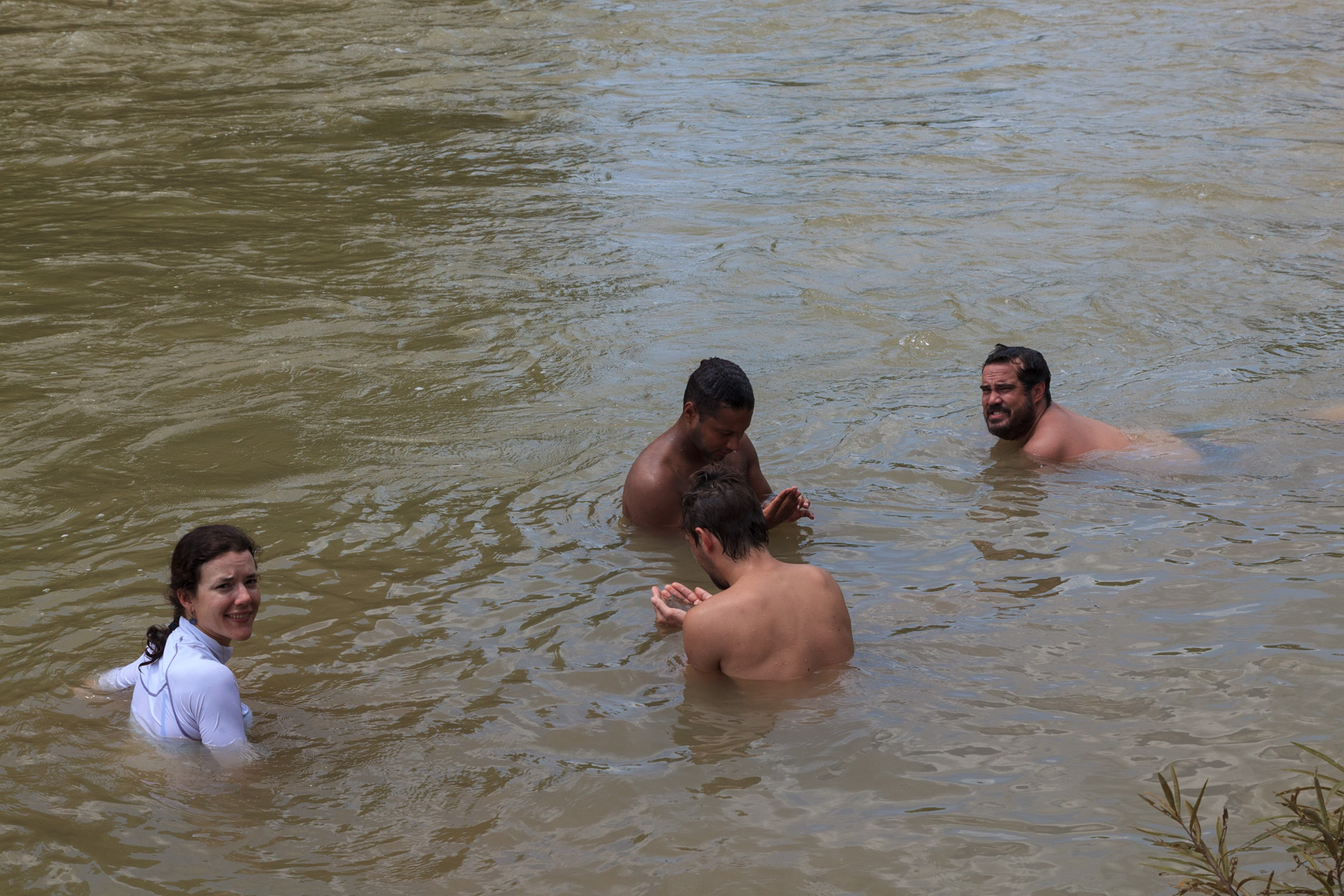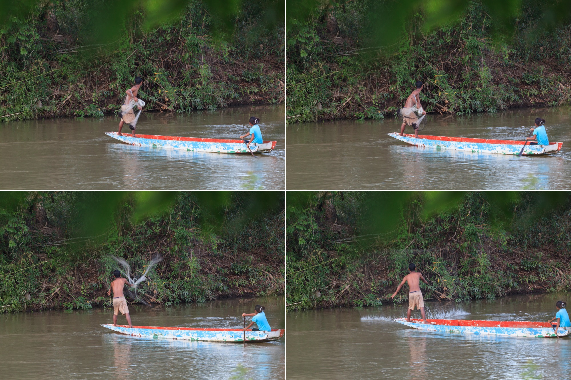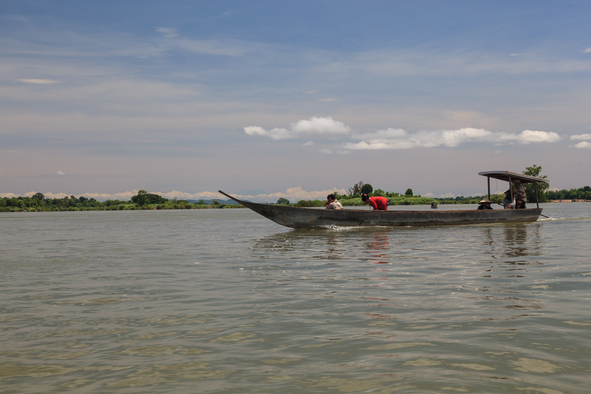 Nous pagayons donc au milieu de ce fleuve mythique qui fait vivre plus de 250 millions de personnes. Nous devons parfois nous frayer un passage entre des ilots de végétation qui créent un front sur le fleuve. Nous passons par des rapides, manquons de chavirer complètement dans un virage un peu trop prononcé. Nous échouons dans une position délicate, le bateau planté dans une touffe végétale. Au passage, nous entrainons un autre canoë et ses trois occupants dans notre naufrage. On est pirate ou on l’est pas… Nous observons aussi les nombreux pêcheurs au filet. Très photo-pittoresque.