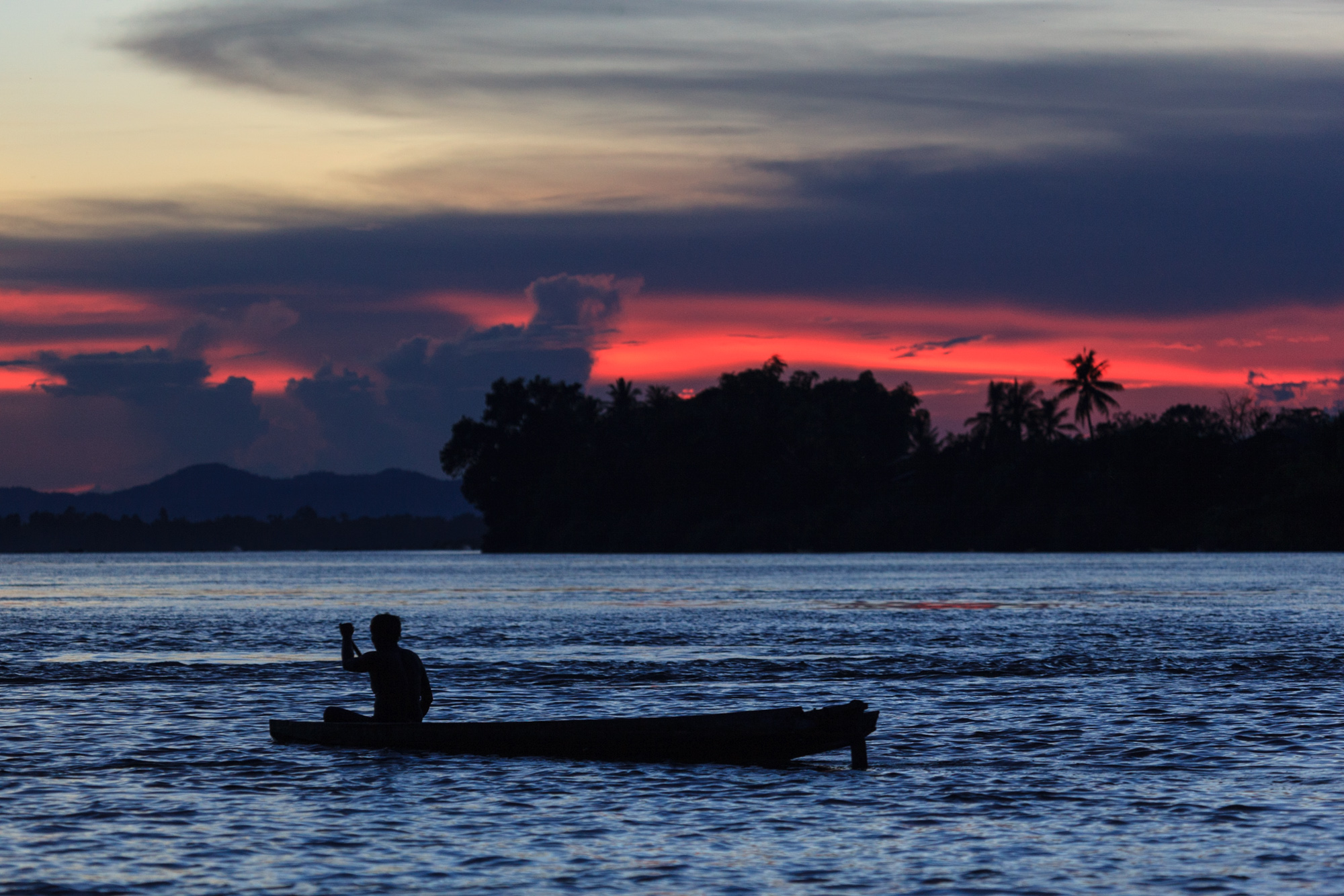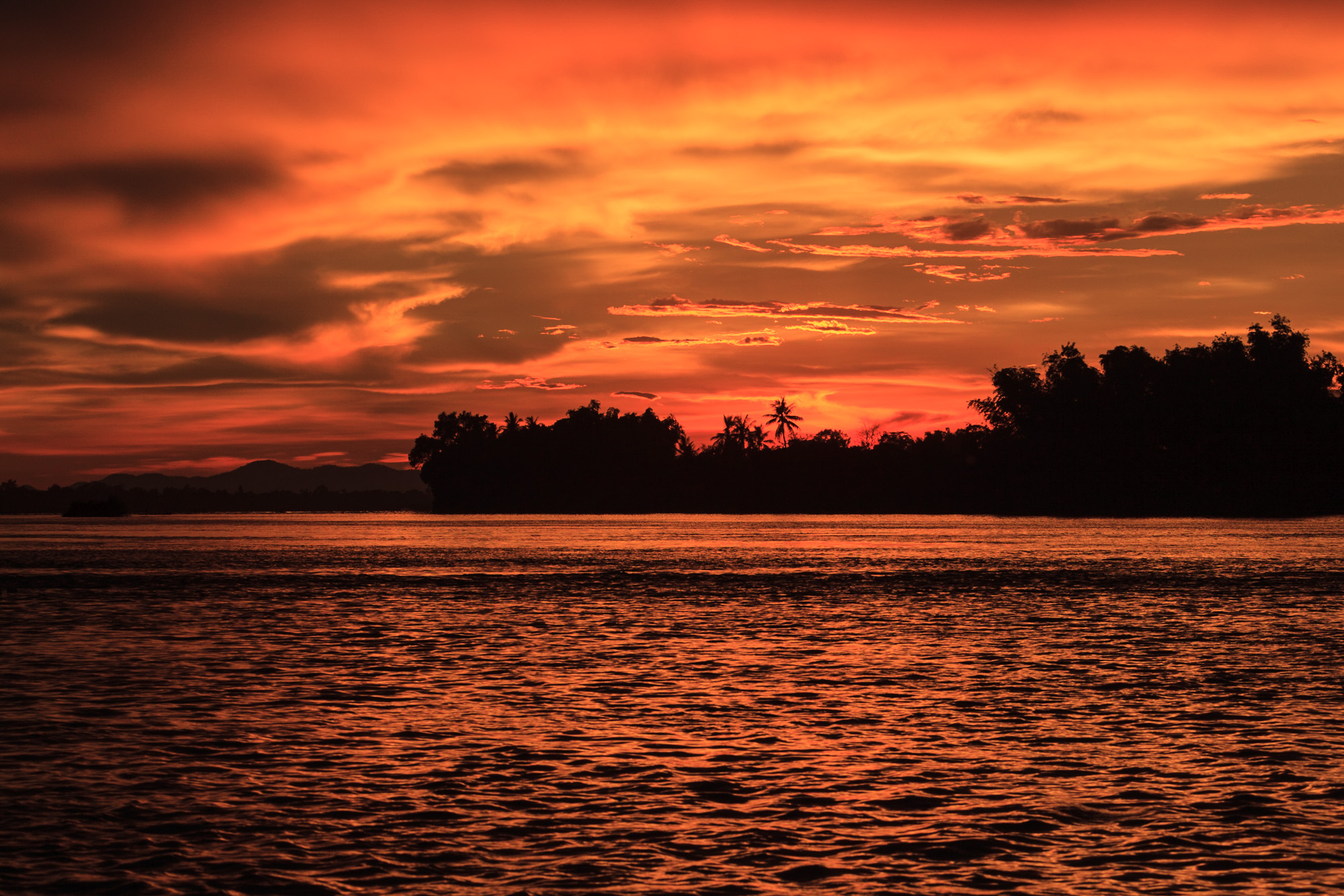L’ile de Don Det connait depuis 5–6 ans un engouement de plus en plus grand auprès des routards de tous horizons. L’explosion du tourisme a entrainé une urbanisation fulgurante du nord de l’ile: guesthouses, restaurants et bars bruyants ont envahi la place. Tout est fait pour accueillir les backpackers en recherche d’alcool et de de shit pas chers. Nous avons de la chance: nous arrivons hors saison. Les bars sont vides, l’ile est tranquille. Du coup, ici plus qu’ailleurs, nous sentons la douceur de vivre asiatique bercée par la lumière extraordinaire de cette région du Mékong. C’est certainement ici que nous ferons les plus belles photos de coucher de soleil de tout notre voyage dans le sud-est asiatique.