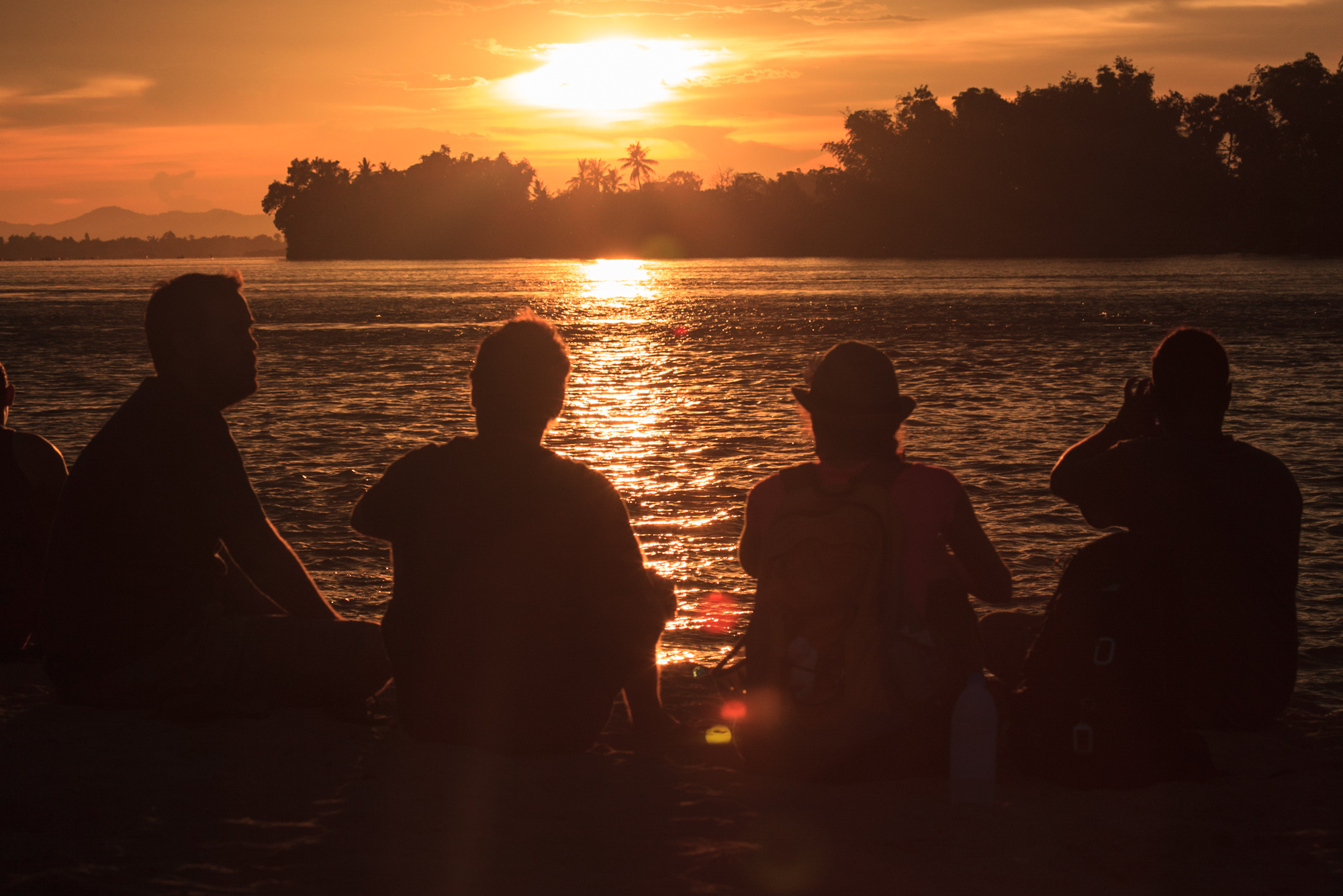 Nous terminons notre journée kayak sur la plage de Don Det, une bière (et un appareil photo) à la main devant le coucher de soleil.