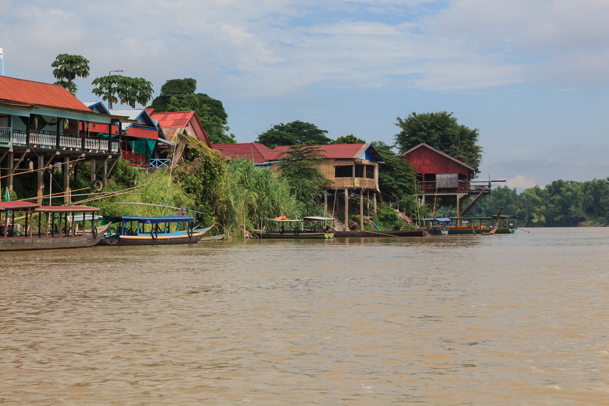 Nous arrivons sur l’ile de Don Det après quelques heures de minivan depuis Paksé. Le Mékong donne toujours l’impression d’être calme… sauf quand on est dessus. Même plein gaz on sent que l’embarcation motorisée qui nous fait traverser le fleuve est emportée par le courant.