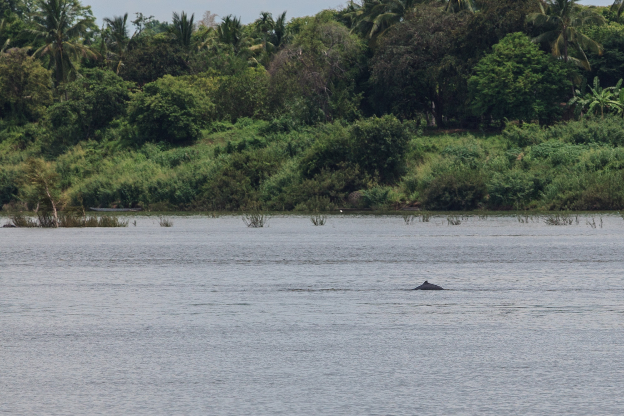 Juste avant la frontière cambodgienne, nous faisons halte sur un gros récif au milieu du fleuve pour observer les dauphins du Mékong. Il en reste une quarantaine: cette espèce est en voie d’extinction. On les aperçoit au loin, seuls ou en famille, faire surface pour prendre leur respiration. Il parait que, pour mieux les voir, il faut accoster sur les berges cambodgiennes. Même sans visa cambodgien, c’est possible: il suffit d’arroser les garde-frontière (on ne parle plus d’eau, vous m’aurez comprise). Les dauphins du Mékong, tout un business !