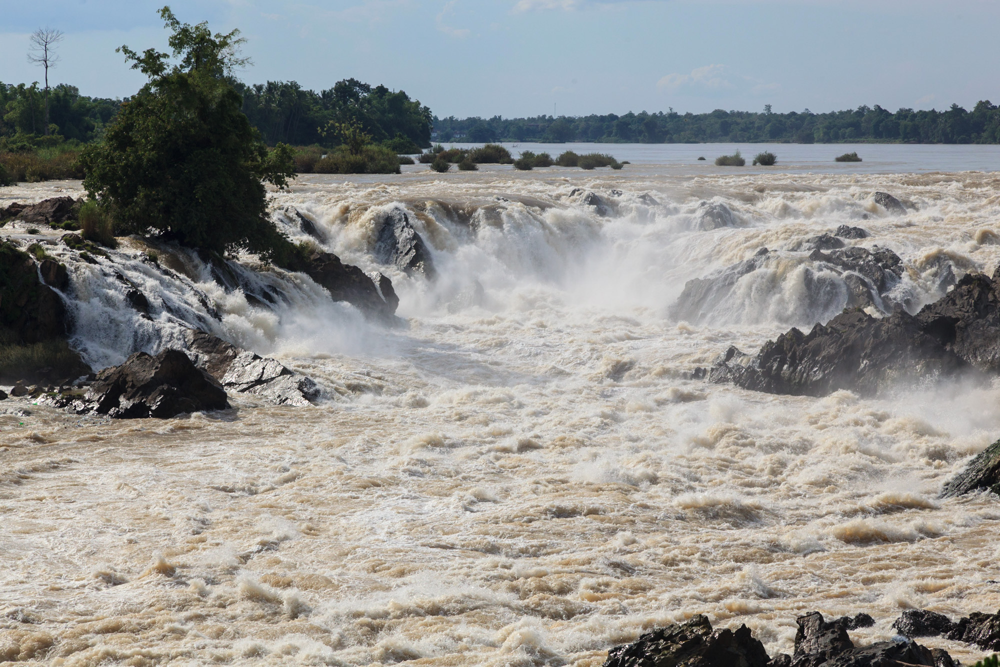 Tout au sud du Laos, juste avant la frontière cambodgienne, le fleuve Mékong s’élargit et laisse apparaitre une myriade d’iles. On appelle cet endroit la région des 4000 iles. Le fleuve qui était jusque là plutôt tranquille devient tumultueux. Des décrochements géologiques ont créé des chutes d’eau qui rendent la navigation impossible sur plusieurs kilomètres.