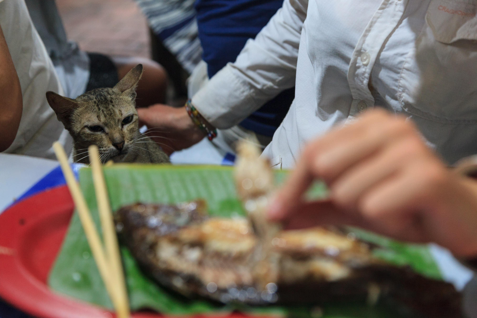 Le Mékong constituant la frontière naturelle ouest du pays sur des centaines de kilomètres, on a pu apprécier (le chat et moi) les produits de la pêche.