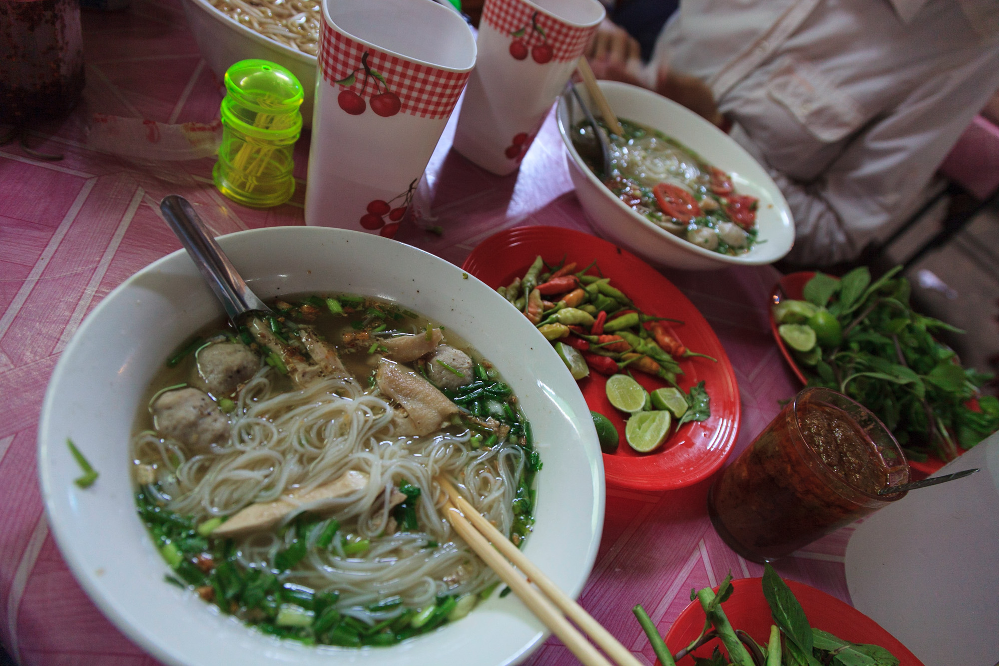 Il y a aussi la soupe aux nouilles et au poulet servi avec des feuilles de menthe, du soja, du chou, de la salade et du citron vert. Elle coute en moyenne 1,30€…