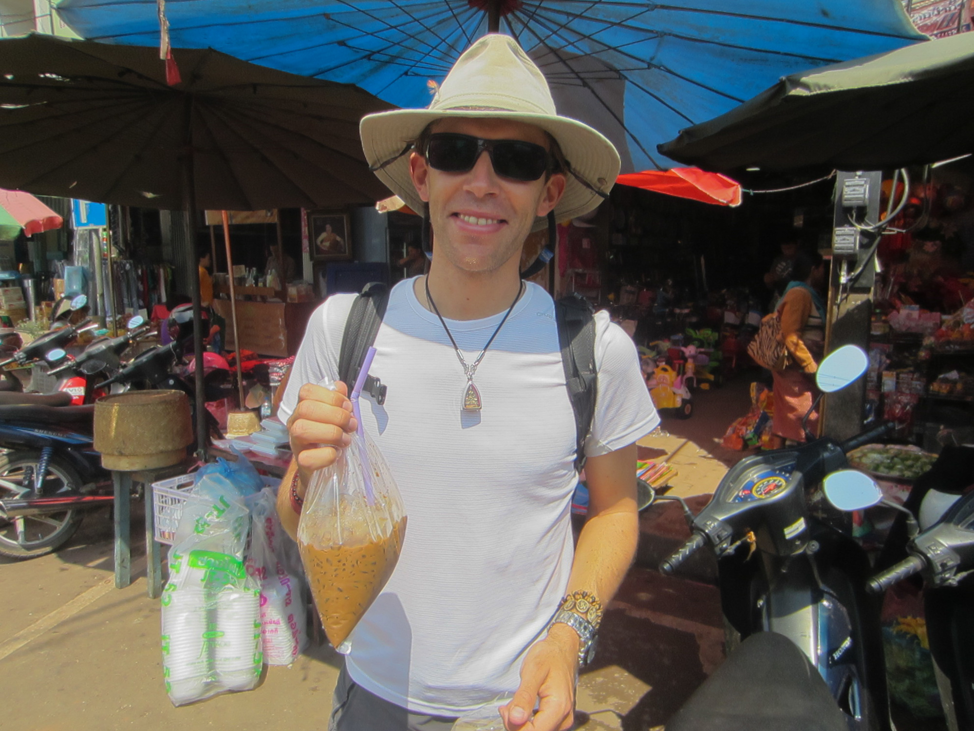 Autre gourmandise locale: le café ! Exit le café soluble. Le Laos est producteur d’un des meilleurs cafés au monde. On confirme, il est absolument délicieux. On peut bien sûr le boire chaud mais par 40°c, on lui préfère sa version glacée. Dans un gobelet ou directement depuis le sac plastique avec une paille, c’est un régal. On ne comprend juste pas comment en ayant un si bon café, les Laotiens sont si peu excités…