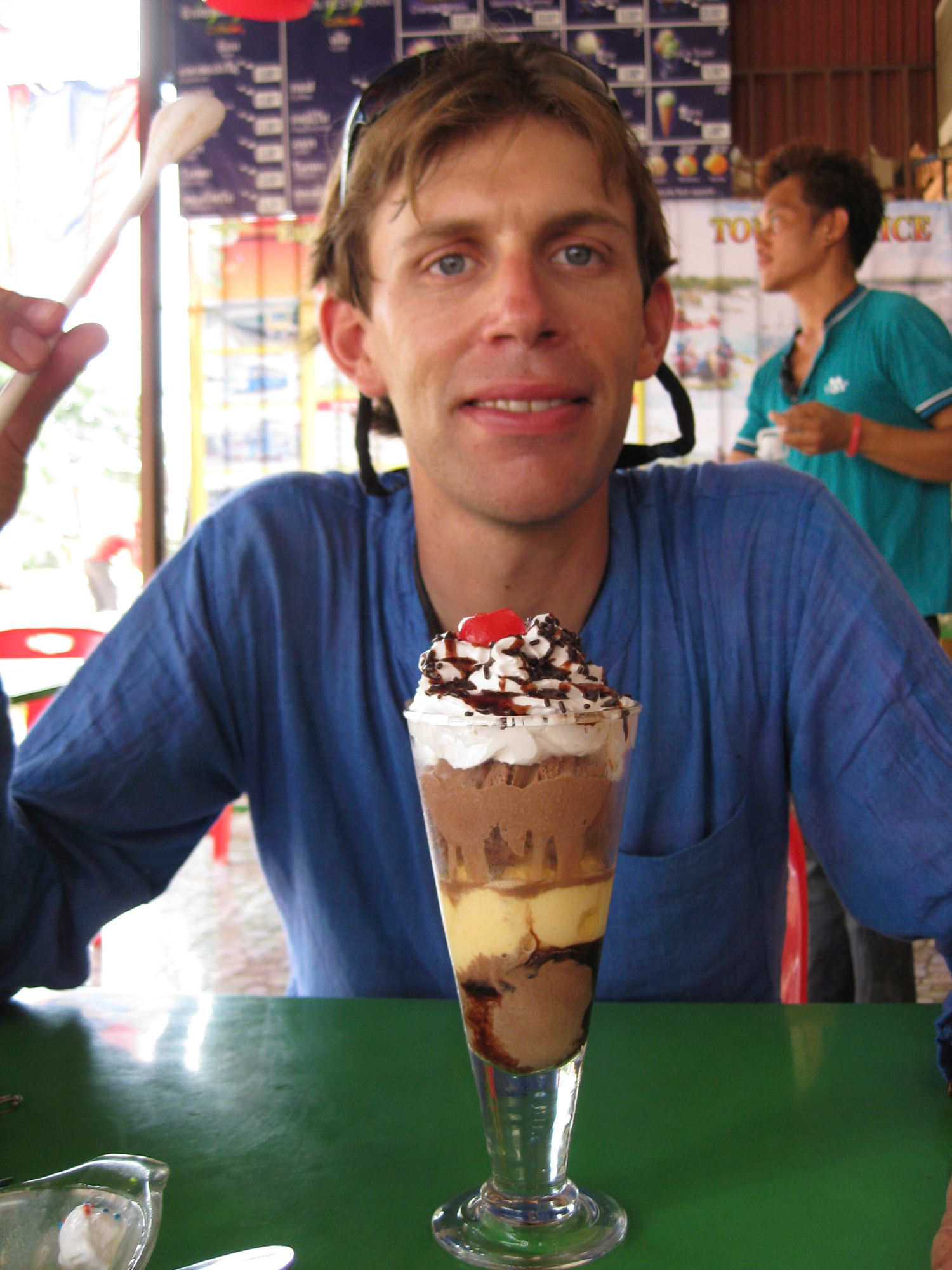 Enfin, le Laos est un des rares pays asiatiques où il y a une certaine culture du dessert (pour le plus grand plaisir de Nicolas). Héritage français indéniable, tartes, gâteaux et coupes glacées sont facilement dénichables.