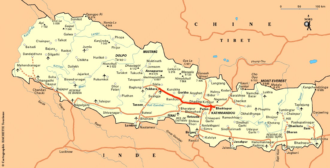Notre itinéraire prévu au Népal: