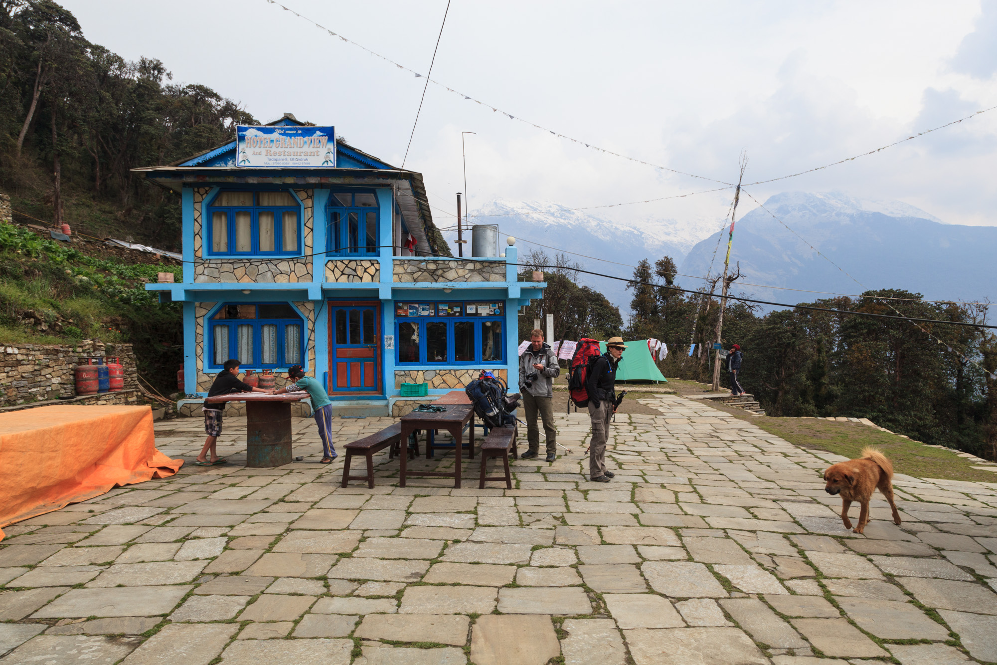 Nous arrivons à Deurali en fin de matinée. La pluie commence à s’installer. Sans relâchement, elle pourrira la marche de nombreux trekkers et se transformera même en tempête de neige pendant que nous passons ces heures à écrire bien au chaud.