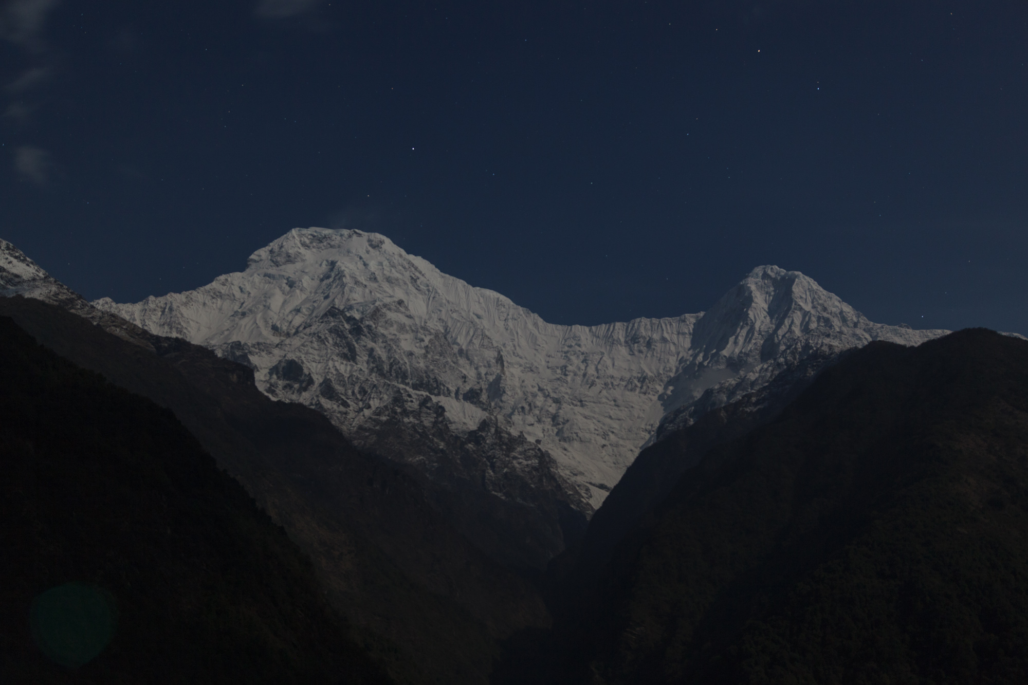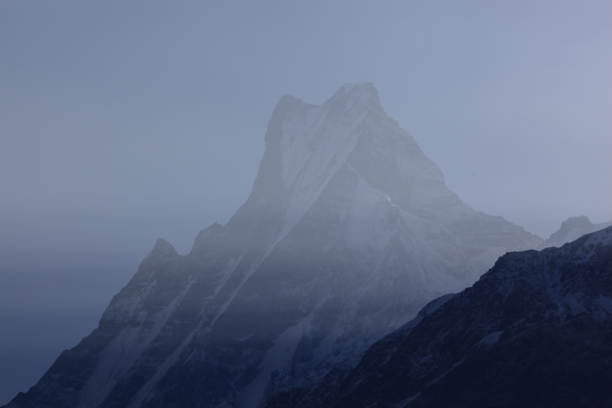 Ce matin, il fait beau. Nous voyons de la terrasse où nous déjeunons l’Annapurna Sud et le Machhapucchre, aussi nommé “Fishtail”, la queue de poisson, en raison de sa forme évocatrice.