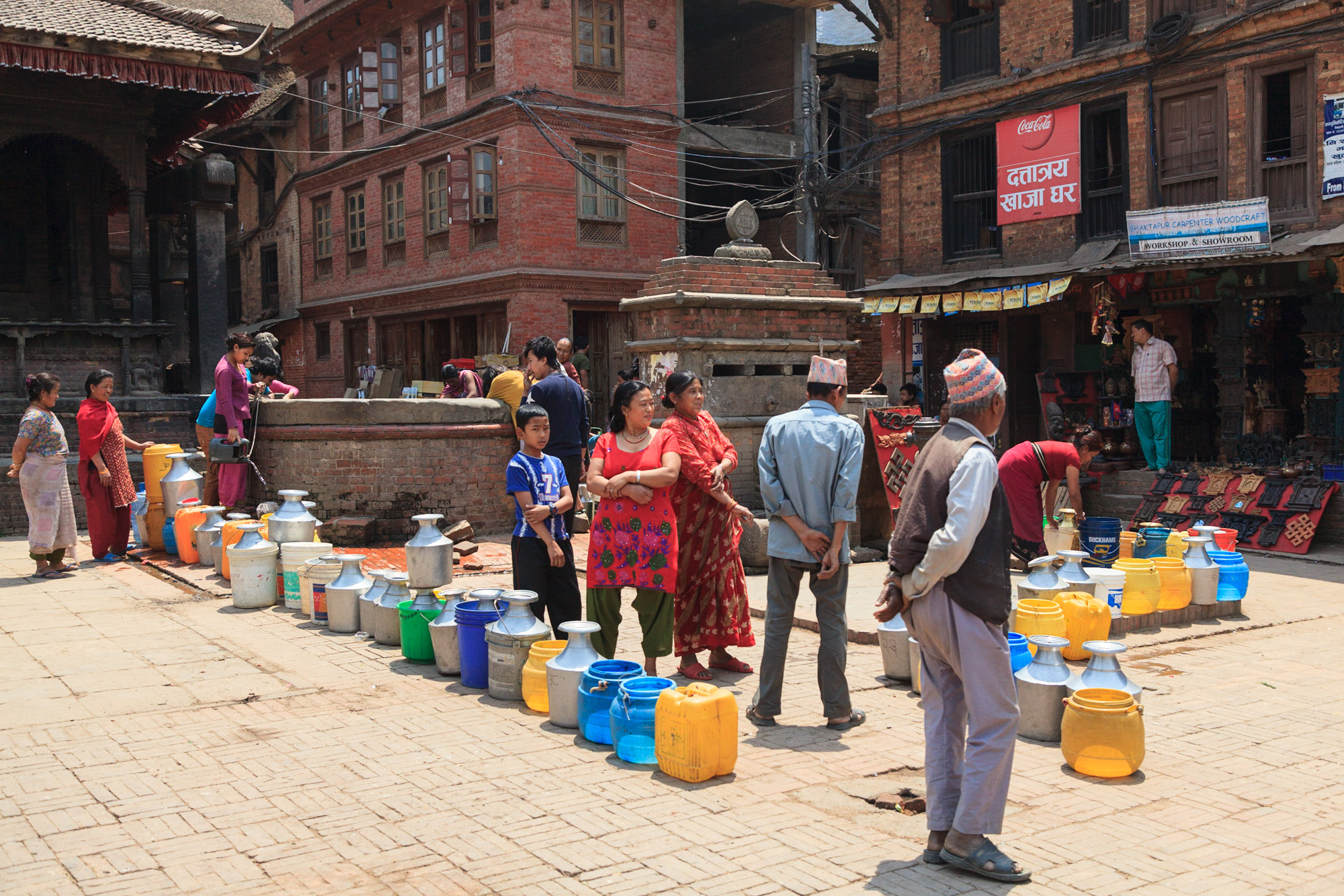 Nous souhaitions du dépaysement, nous en avons eu pour notre argent. La première image que nous avons de Bhaktapur est celle de femmes puisant de l’eau d’un puits dans la rue.