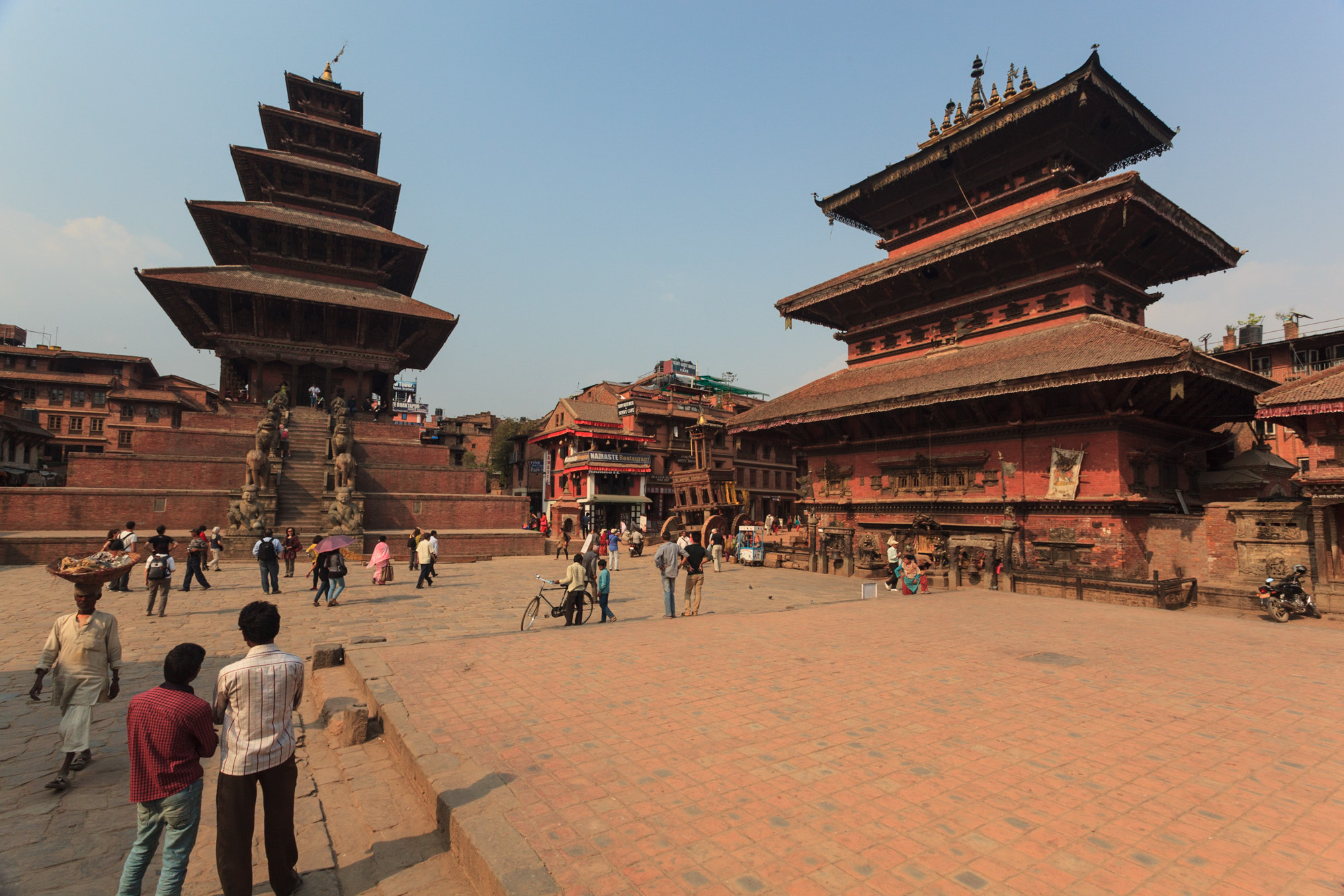 Write comment (0 Comments)A notre retour de Pokhara, nous nous nous rendons à Bhaktapur, située à 15km de Kathmandu. Ville construite au XIIeme siècle, elle a su préserver son splendide patrimoine architectural. Les très vieux temples en bois, recouverts de belles tuiles savamment agencées, font l’objet d’un entretien constant. Il n’y a pas de vaches sacrées qui lâchent de sacrées grosses bouses salissantes et nauséabondes au milieu des rues. C’est d’ailleurs une des dix villes les plus propres d’Asie (c’est dire !!!). Par ailleurs, la cité est fermée à la circulation automobile, ce qui rend la promenade contemplative enfin possible. Les rues sont pavées de briques ce qui permet de moins se concentrer sur ses pieds que sur le spectacle des rues.