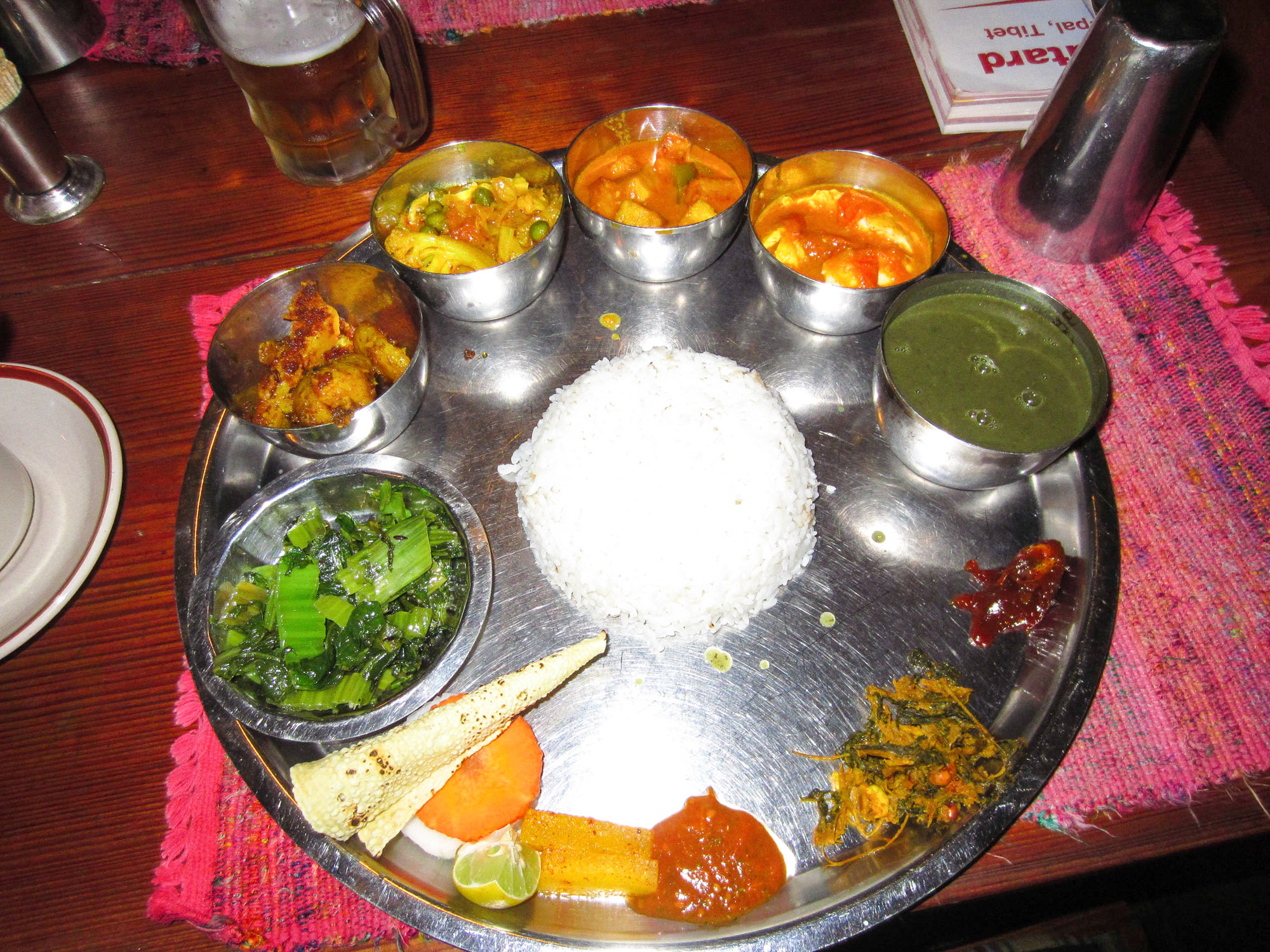 Write comment (0 Comments)Rien que le titre est un oxymore. Le Népal est de loin le pays où nous avons le plus mal mangé. Malheureusement, la très importante influence indienne dans la culture népalaise n’est pas arrivée jusqu’aux cuisines. A part le piment utilisé souvent de façon abusive, les délicieuses épices ont disparu des plats, les légumes aussi.